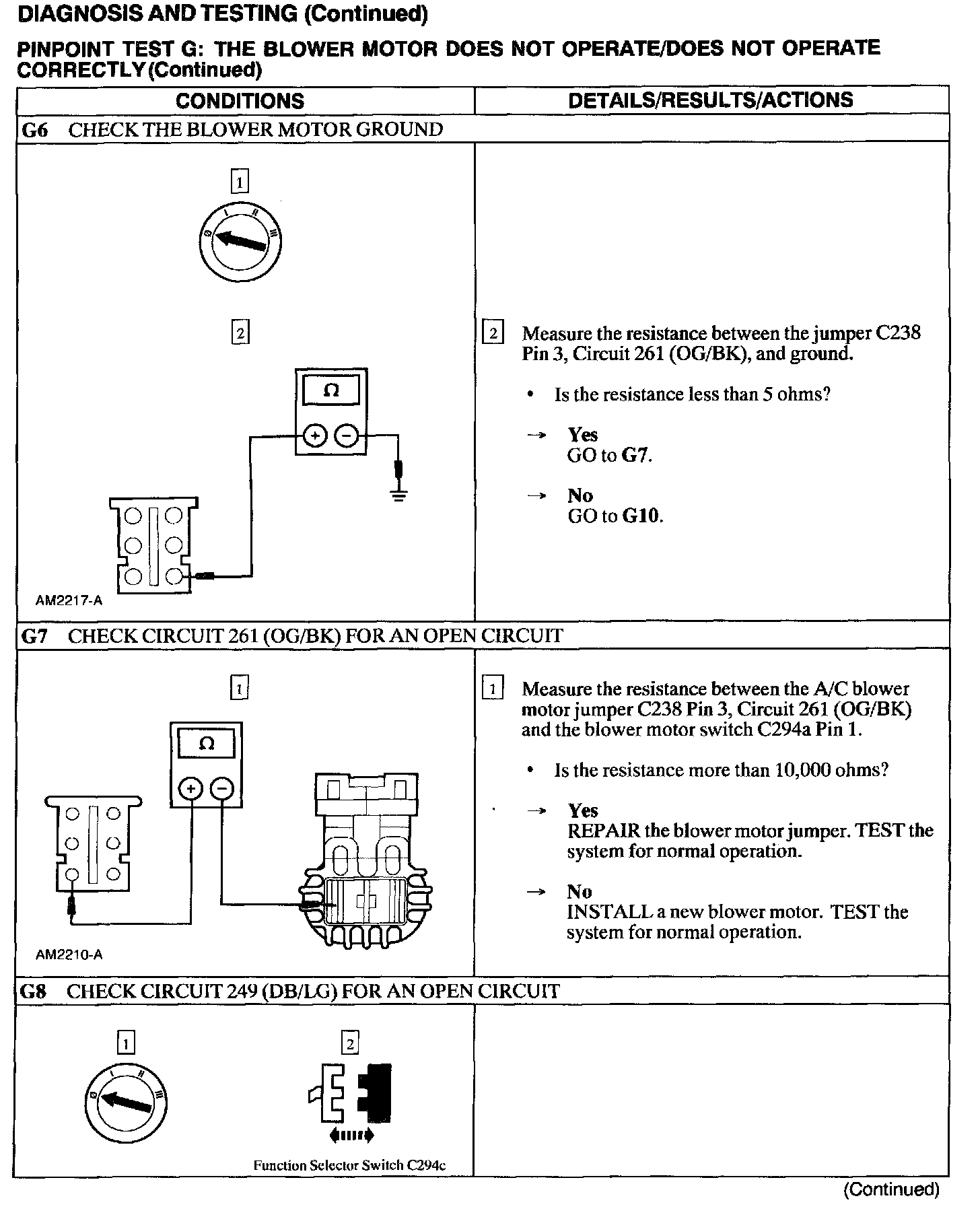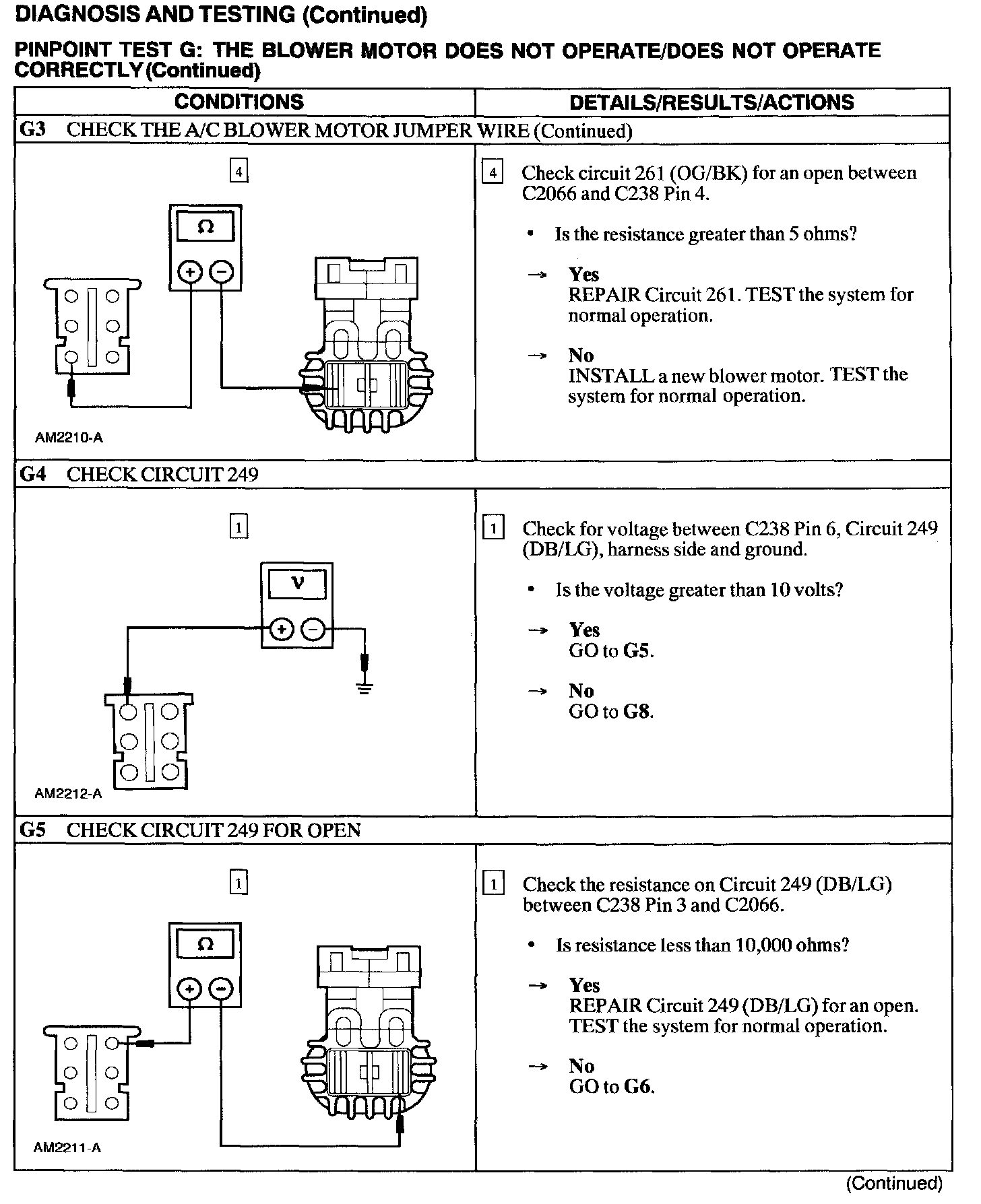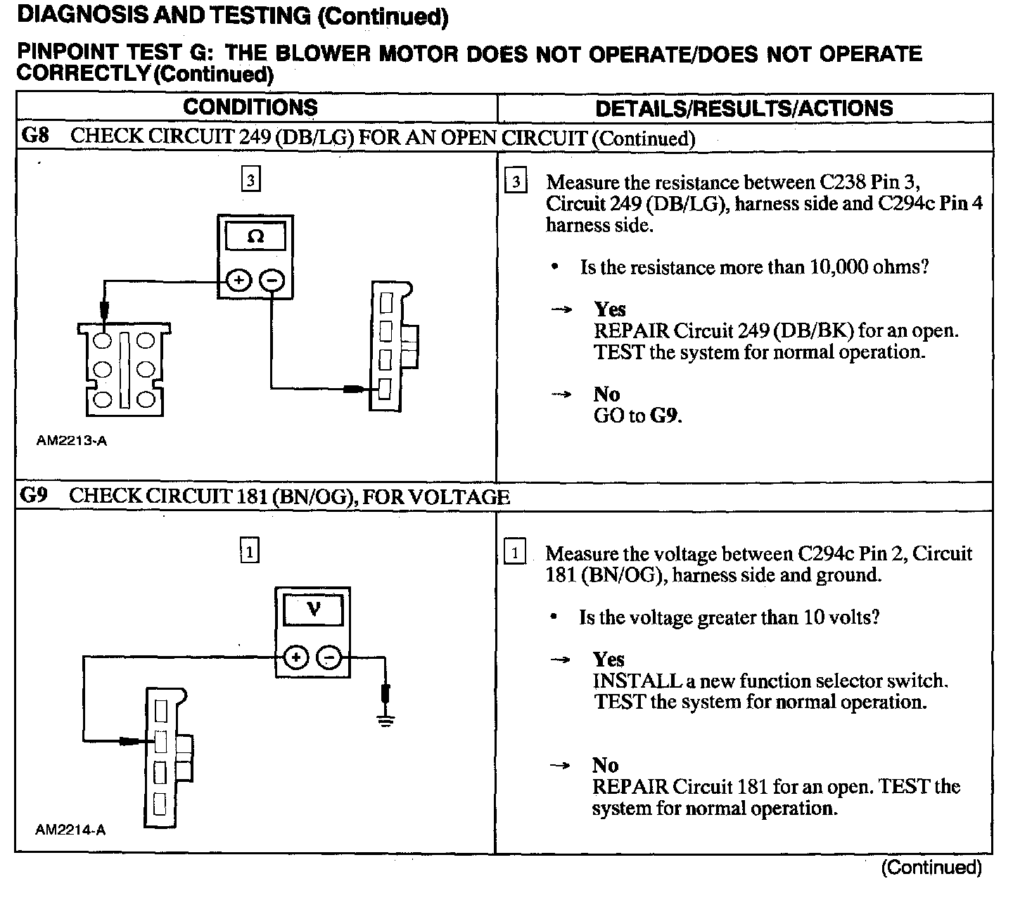 Test G: Blower Motor Not Operate/Does Not Operate Correctly