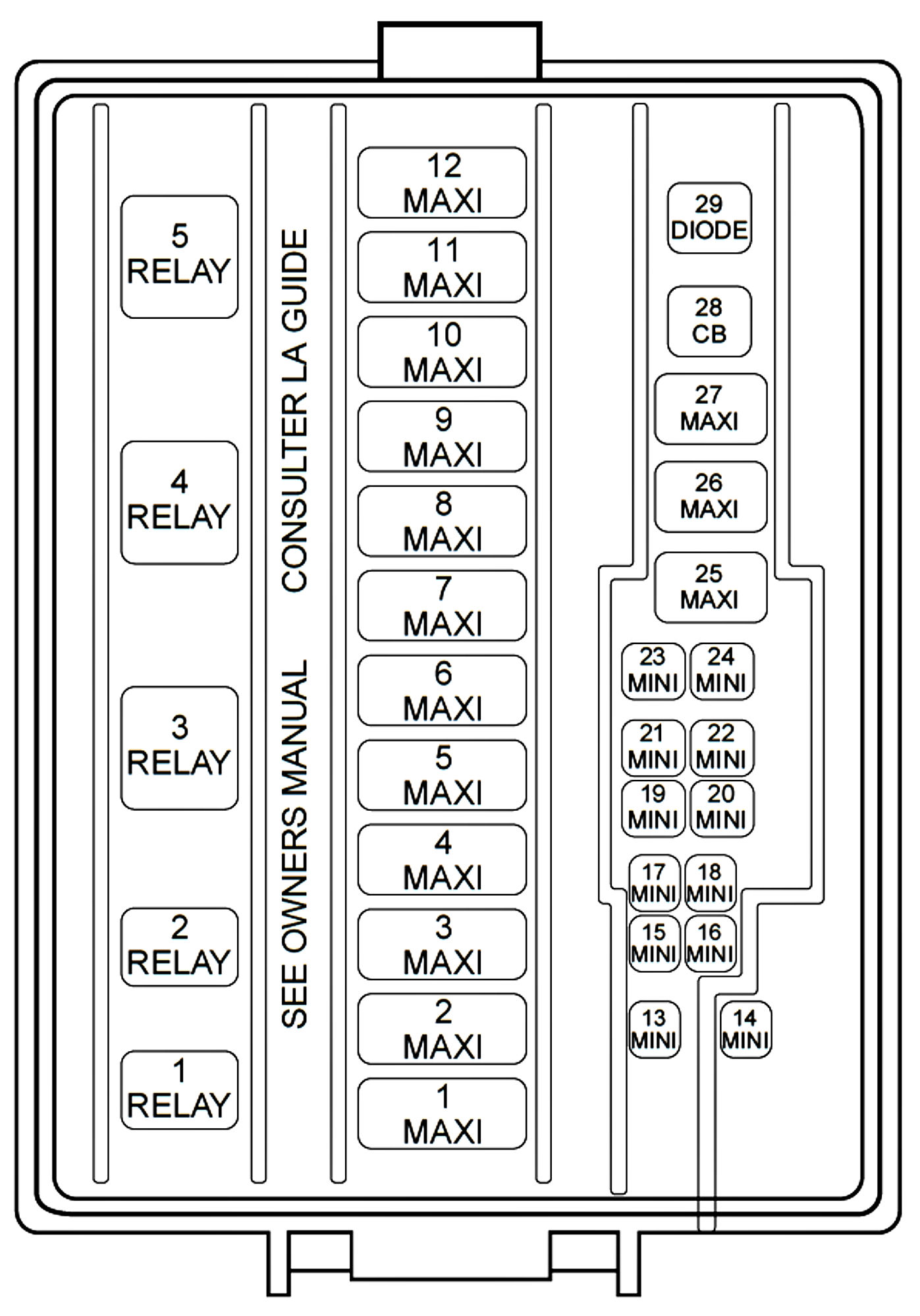 ALLDATA Editor's Note: Ford identifies this one component by 2 different names. Users have reported success comparing these images to determine Application/ID or Location of Fuses and Relays with the Power Distribution Box /