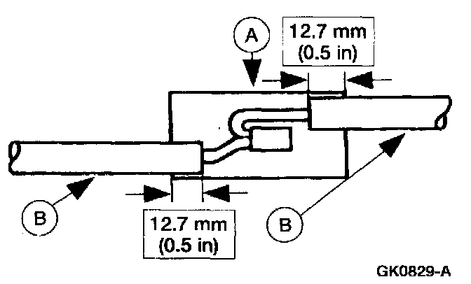 5. Position the (A) heat shrink tube over the (B) wire repair.
