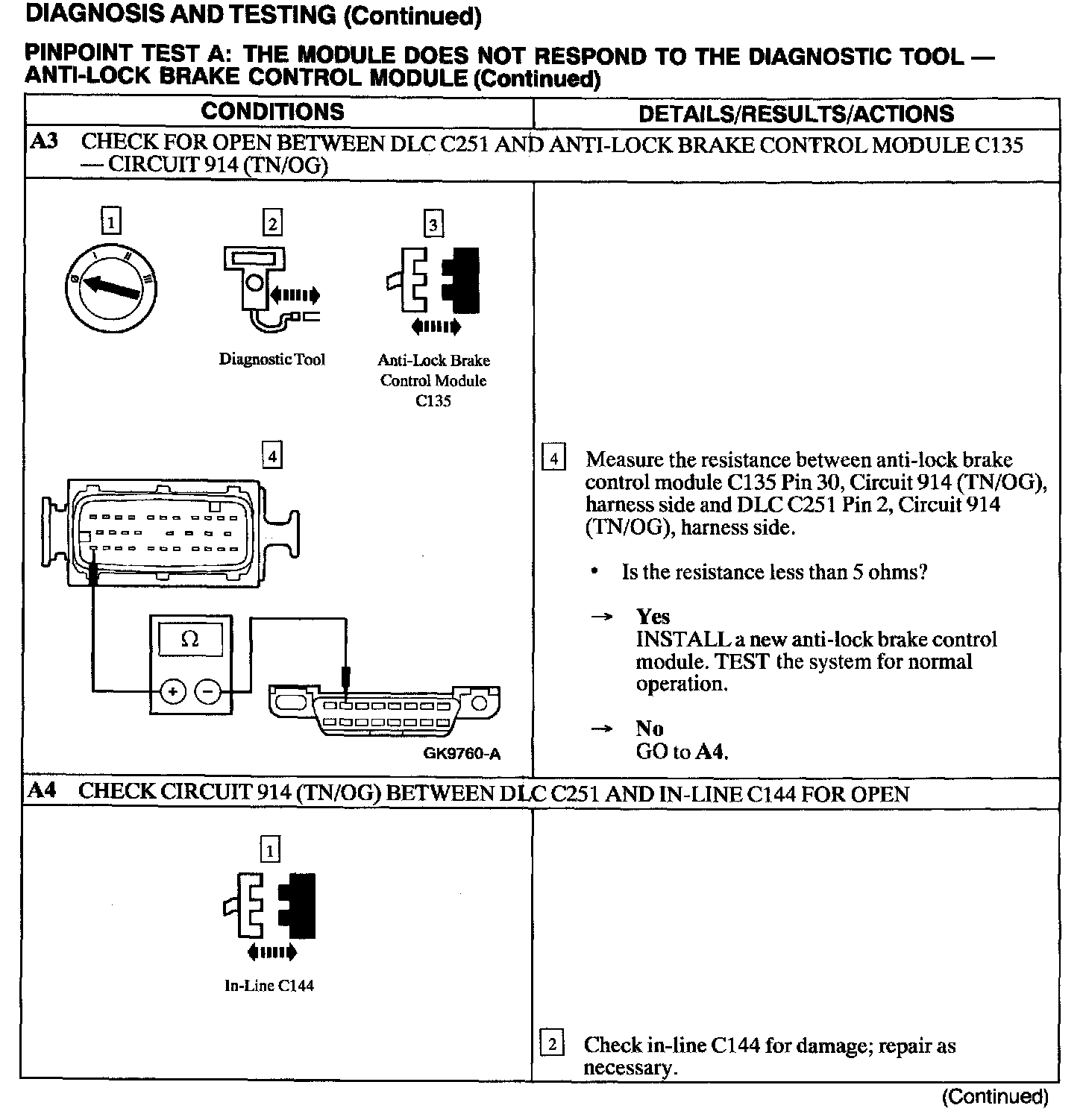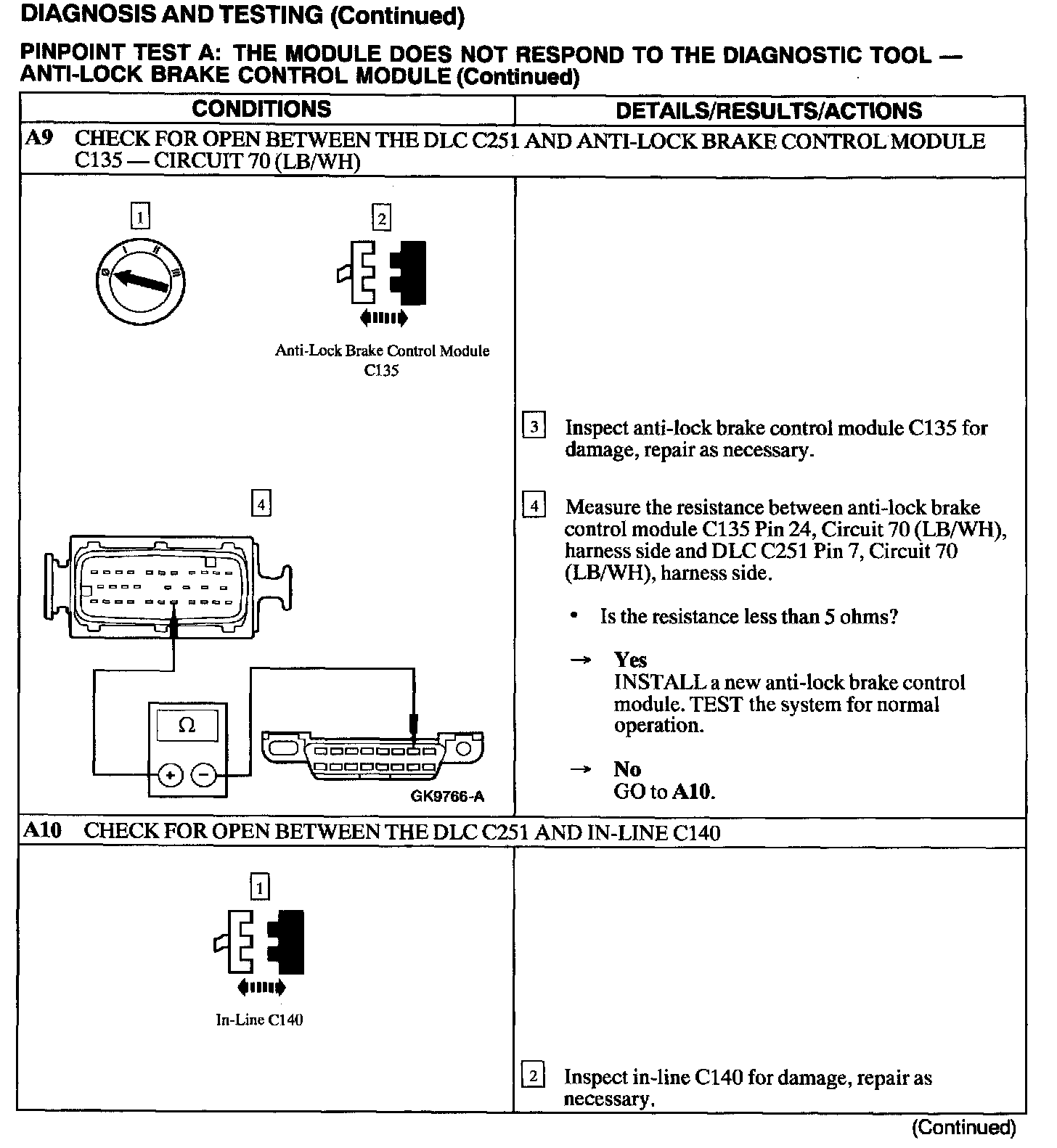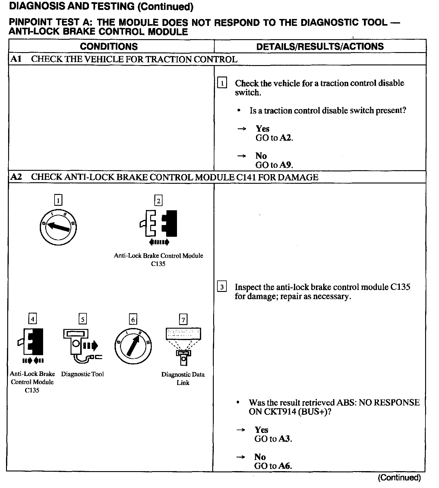 Test A: ABS Control Module Does Not Respond to the Scan Tool