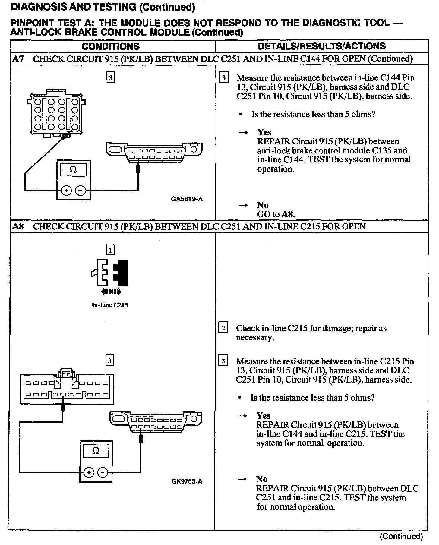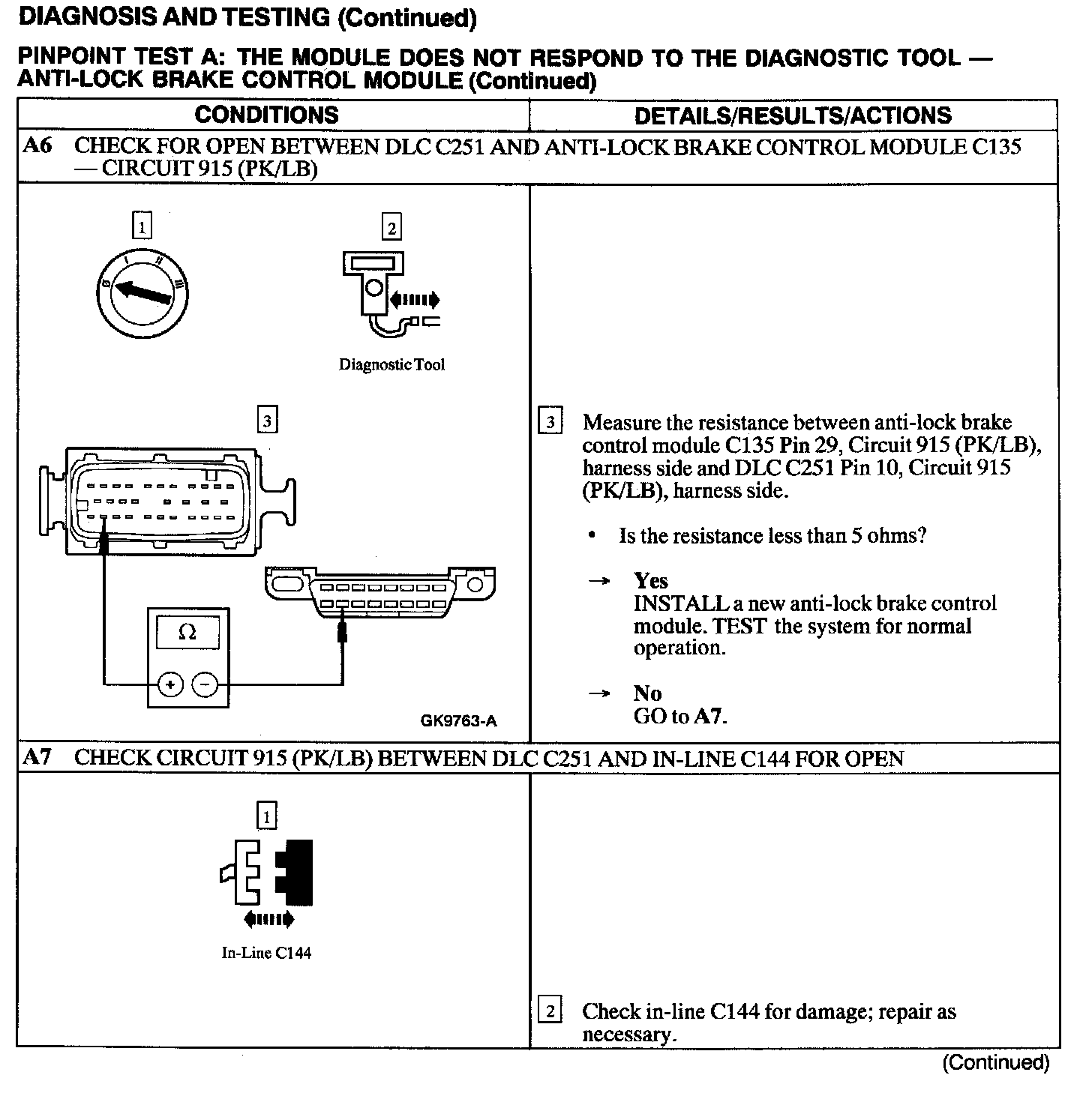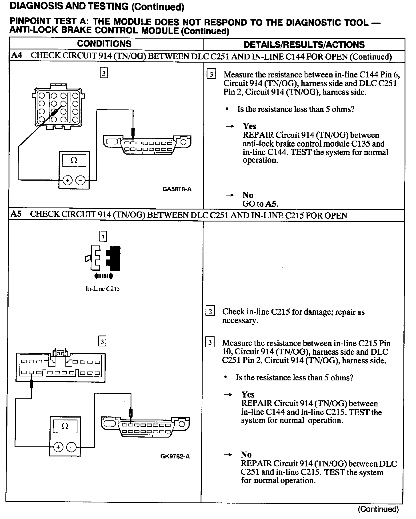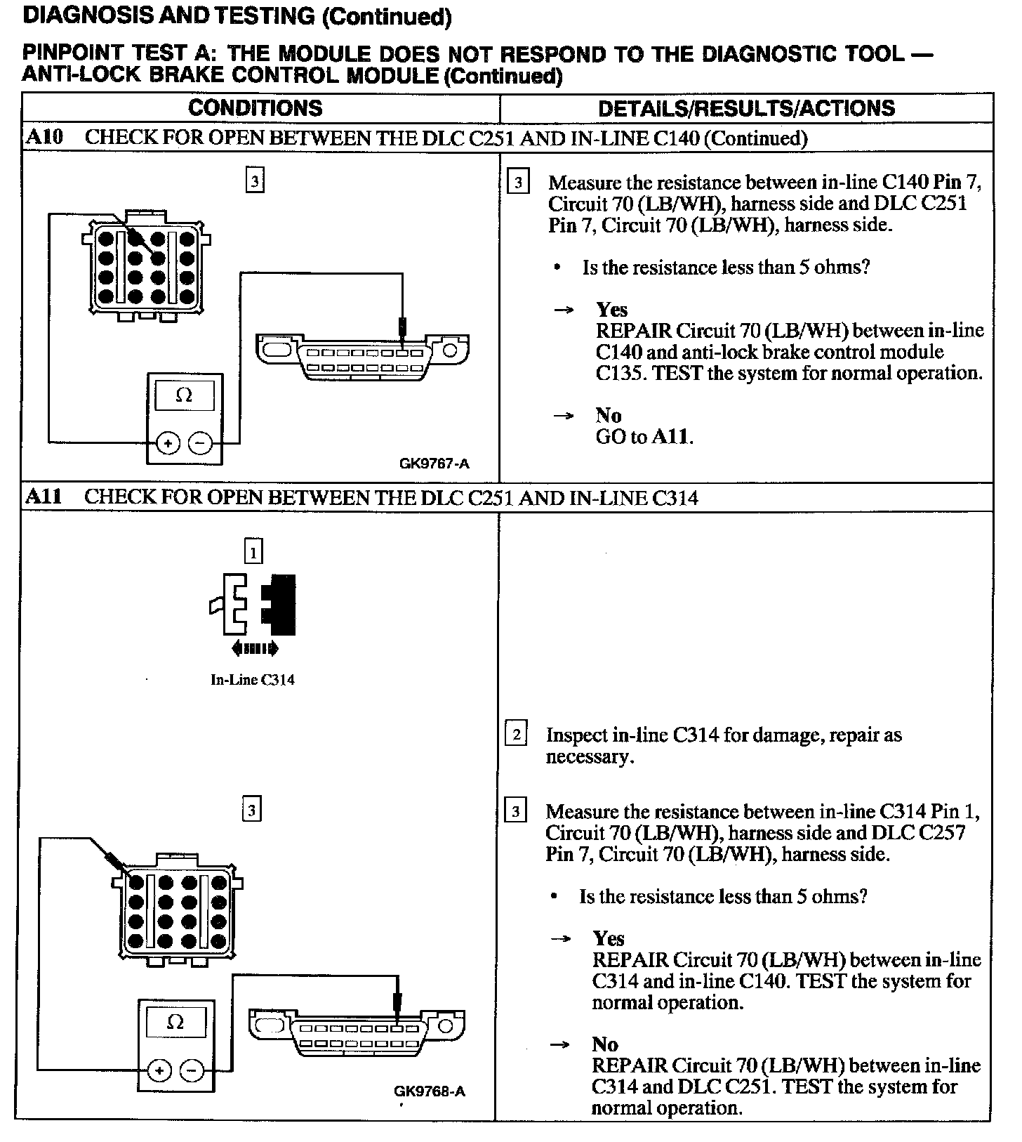 Test A: ABS Control Module Does Not Respond to the Scan Tool