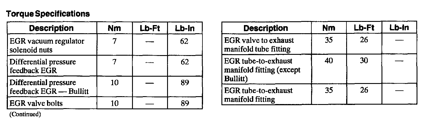 Torque Specifications: