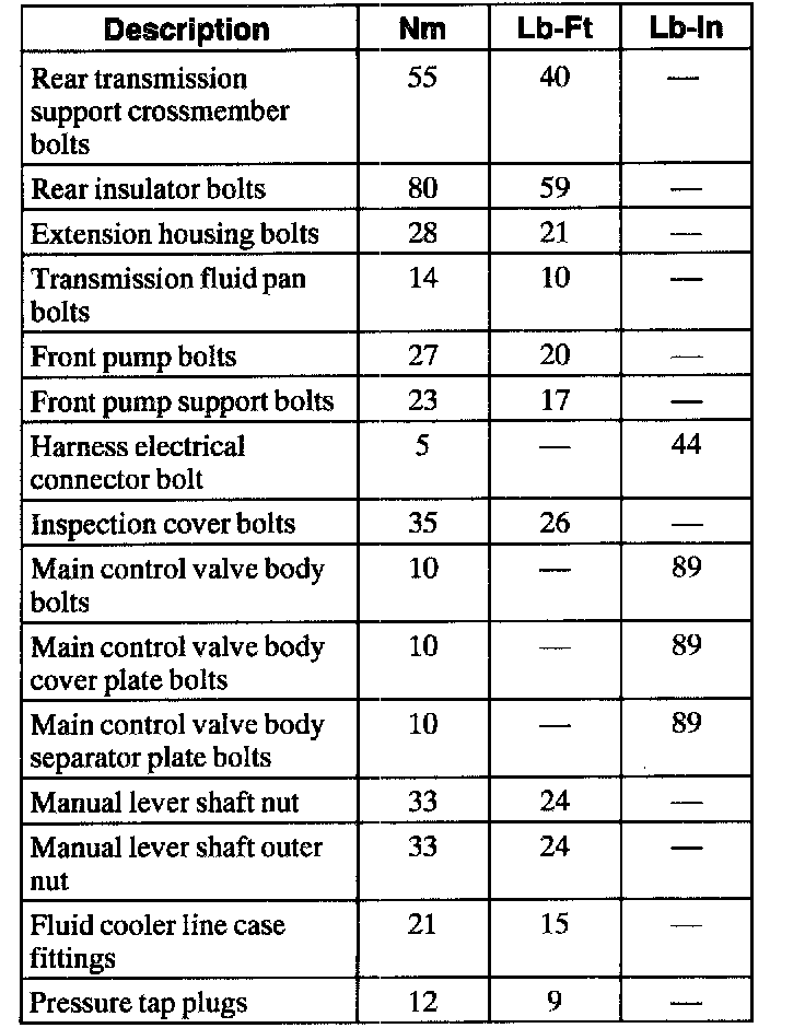 Flex Plate to Engine 80 Nm (59 ft. lb.)