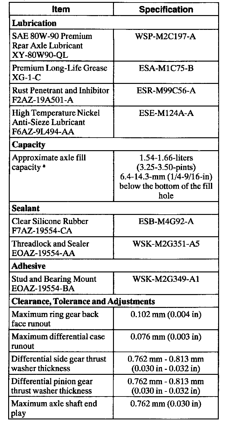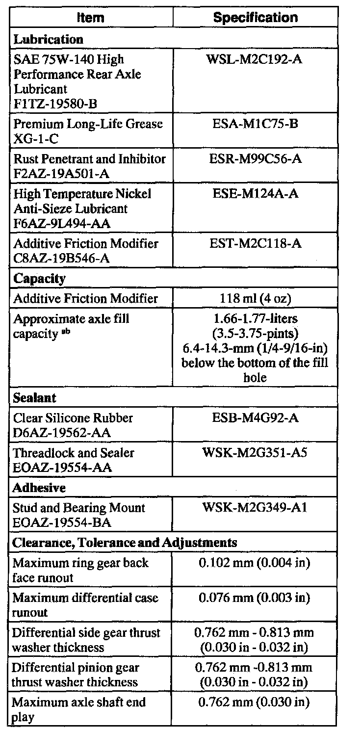 a If it is necessary to refill a Traction-Lok axle with new lubricant, add 118 ml (4 oz) of Additive Friction Modifier C8AZ-1913546-A or equivalent meeting Ford specification EST-M2C118-A before filling the axle with the new lubricant.