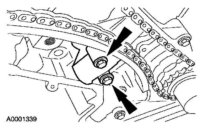 1 Install the timing chain tensioner and bolts.