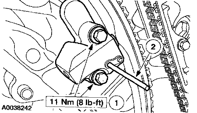 13. Install the RH timing chain tensioner arm.