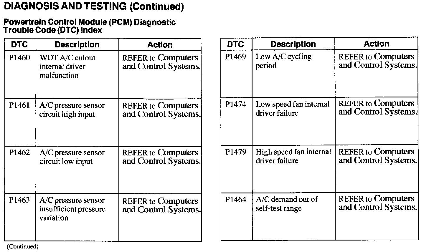 Powertrain Control Module Diagnostic Trouble Code (DTC) Index