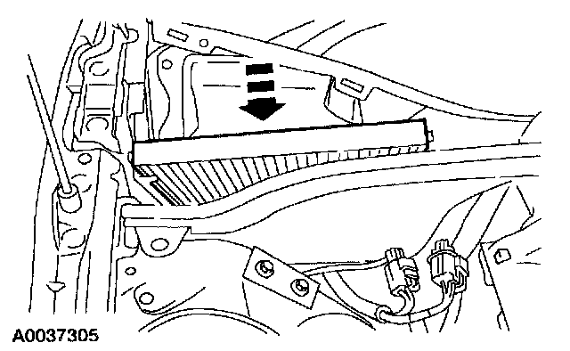 3. Push on the RH corner of the filter to release the clip. Release the LH clip and remove the cabin air filter.