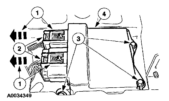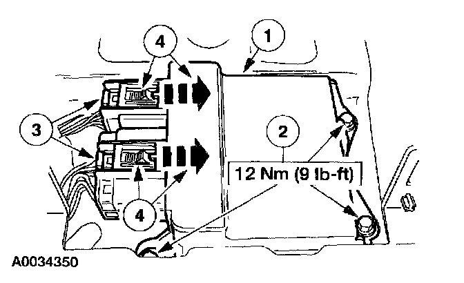 2 Depressing the locking tab. Disconnect the RCM electrical connectors.