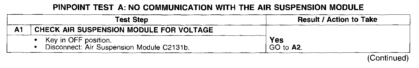 PINPOINT TEST A: NO COMMUNICATION WITH THE AIR SUSPENSION MODULE