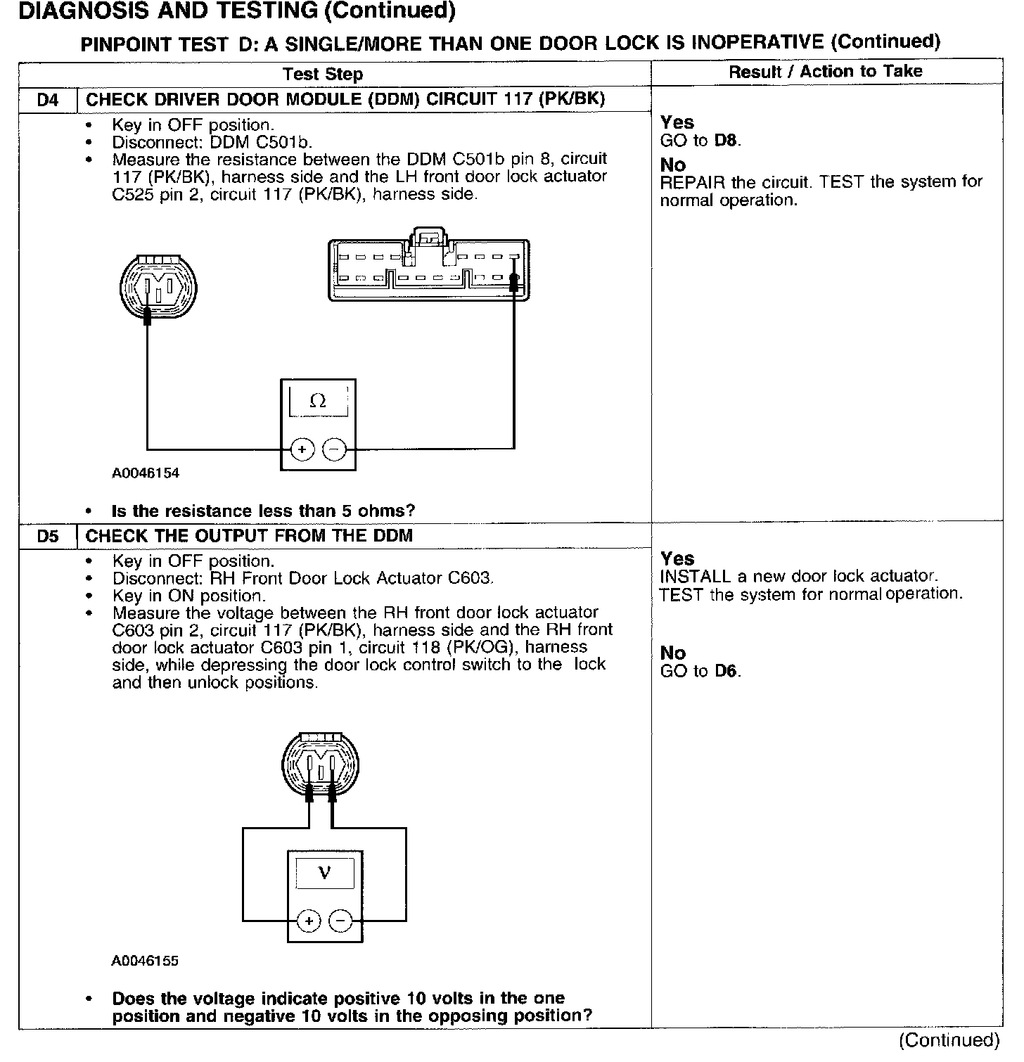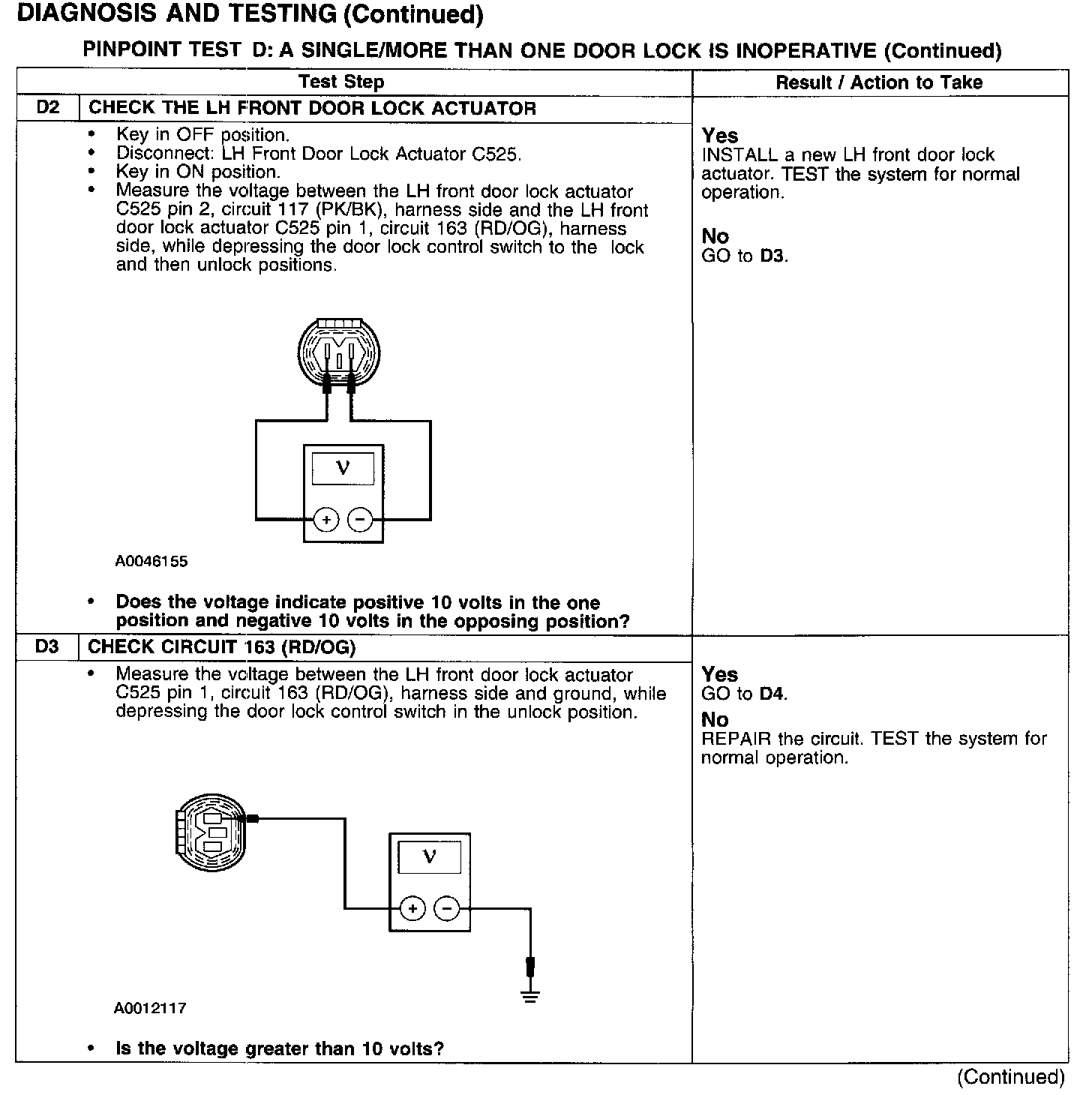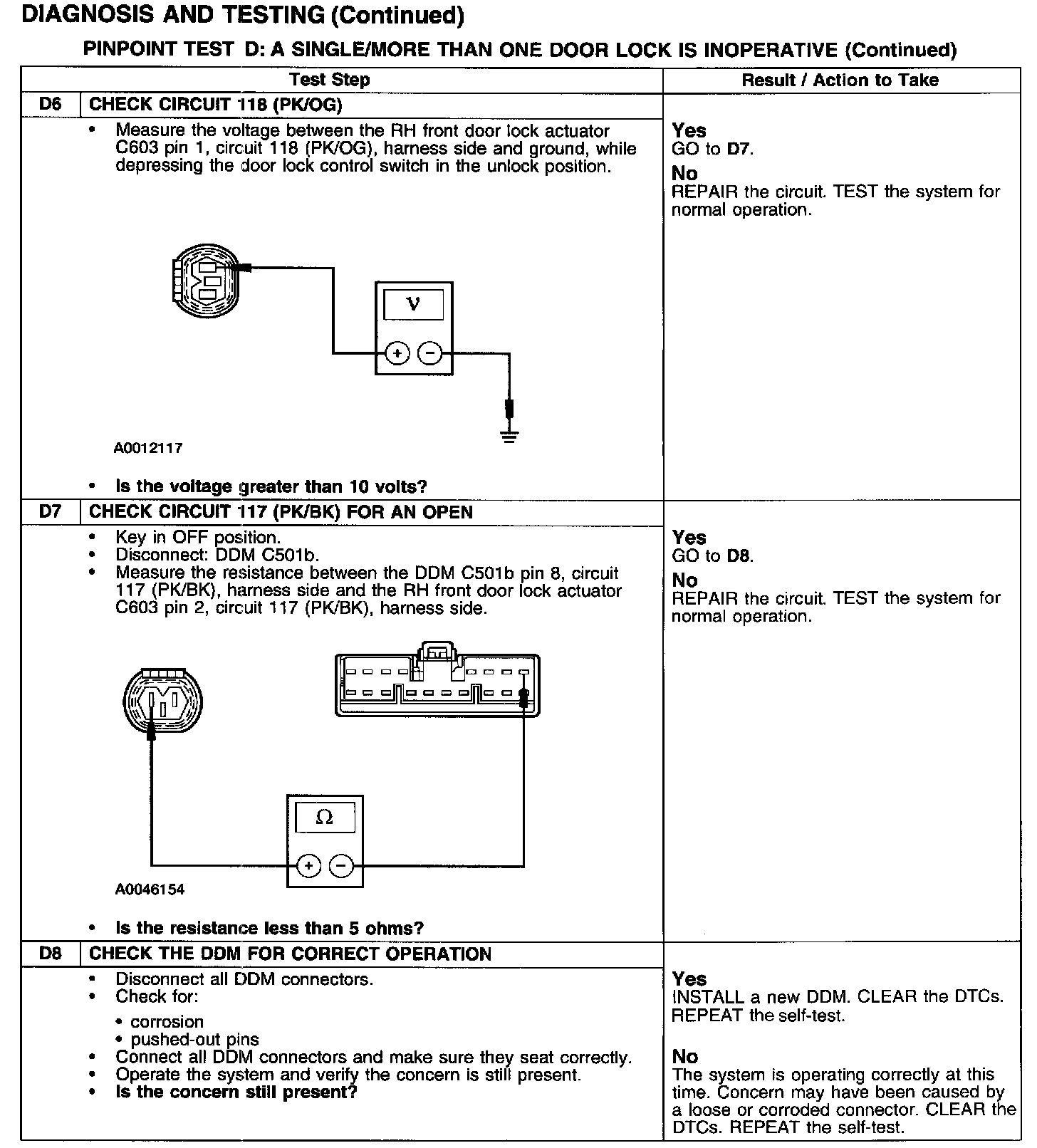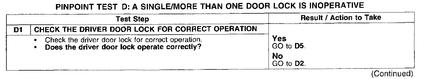 PINPOINT TEST D: A SINGLE/MORE THAN ONE DOOR LOCK IS INOPERATIVE