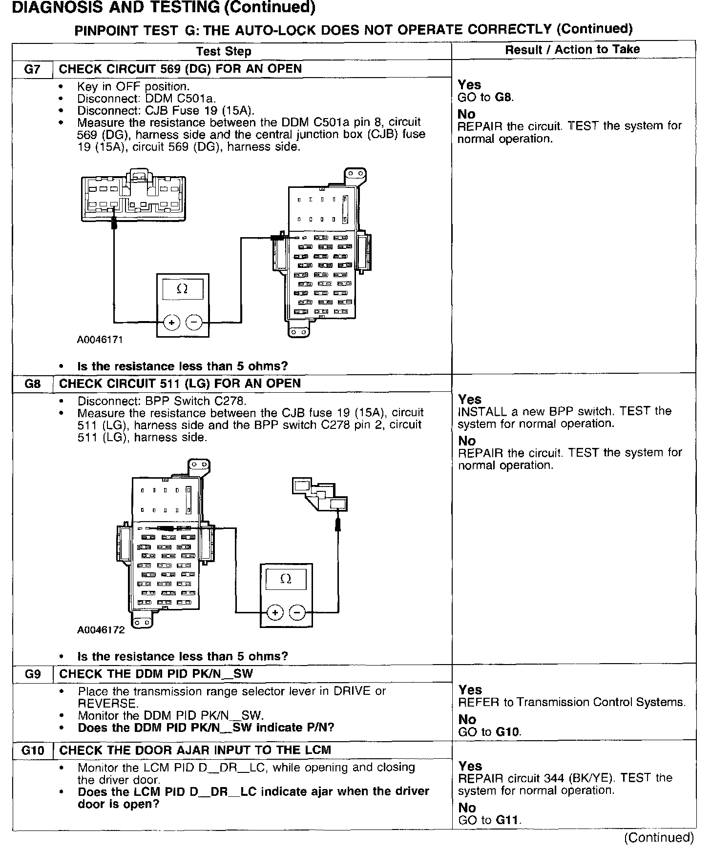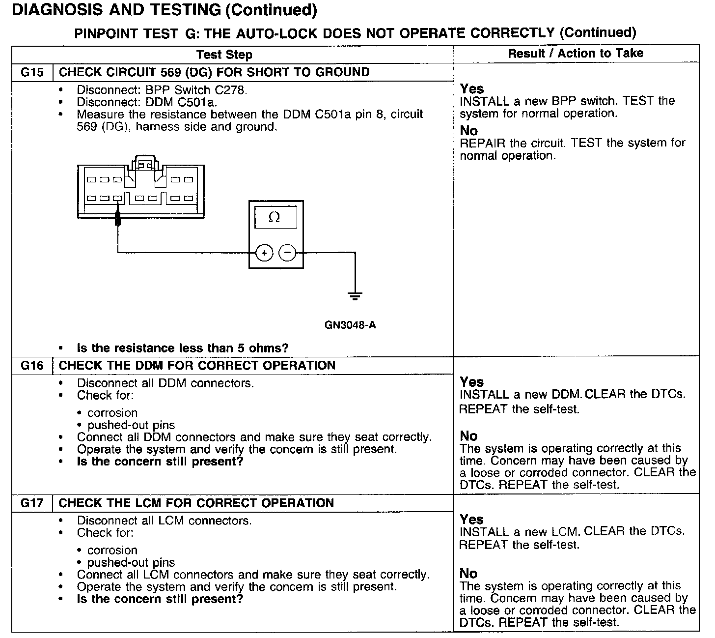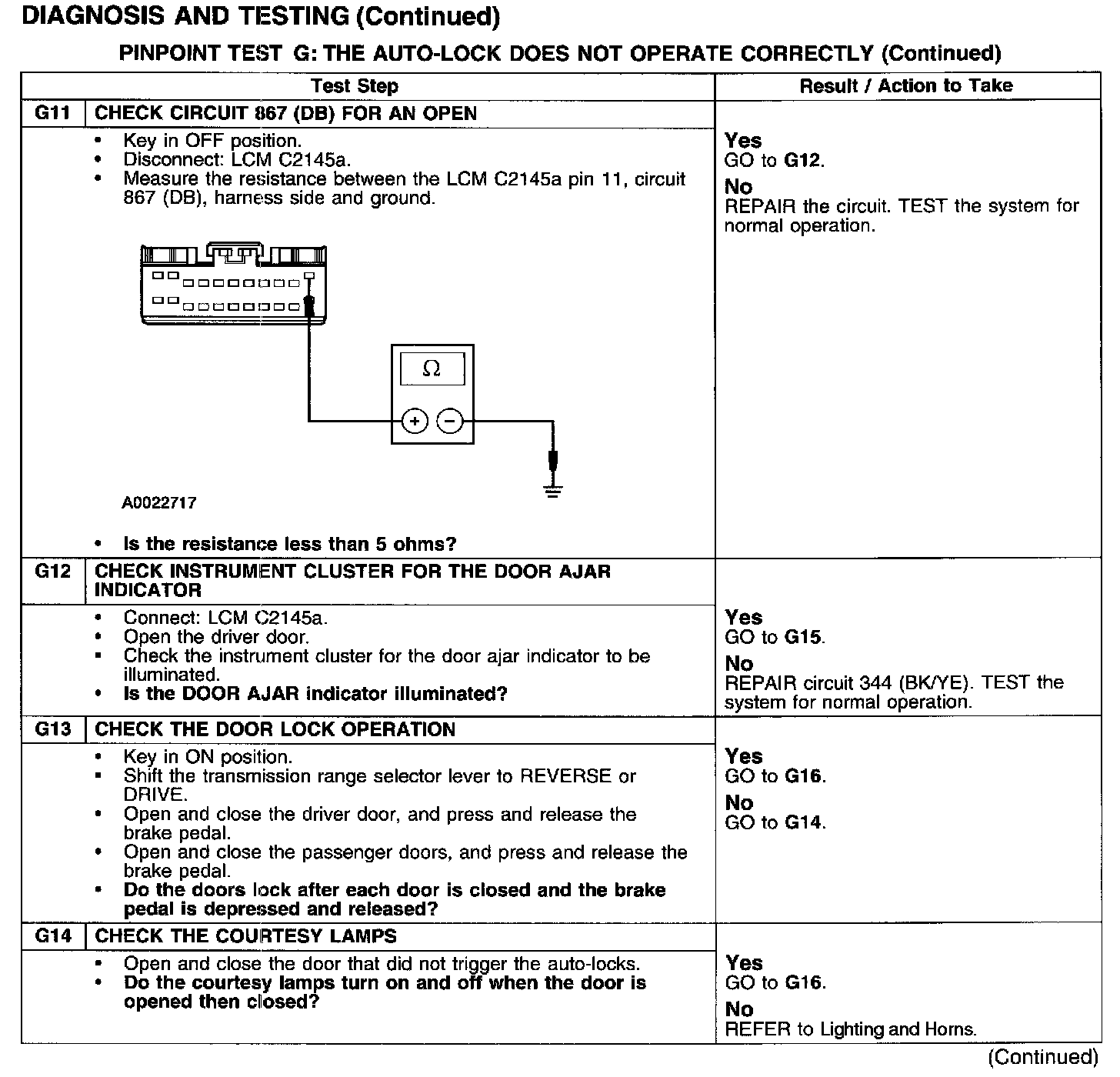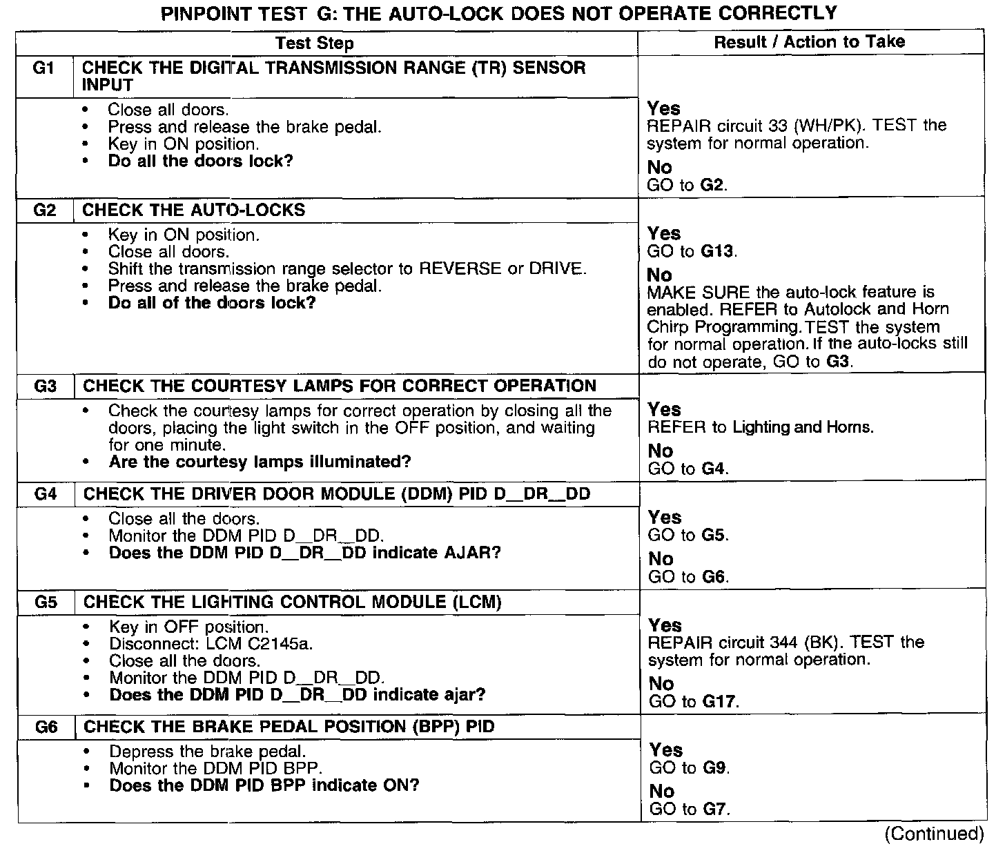 PINPOINT TEST G: THE AUTO-LOCK DOES NOT OPERATE CORRECTLY