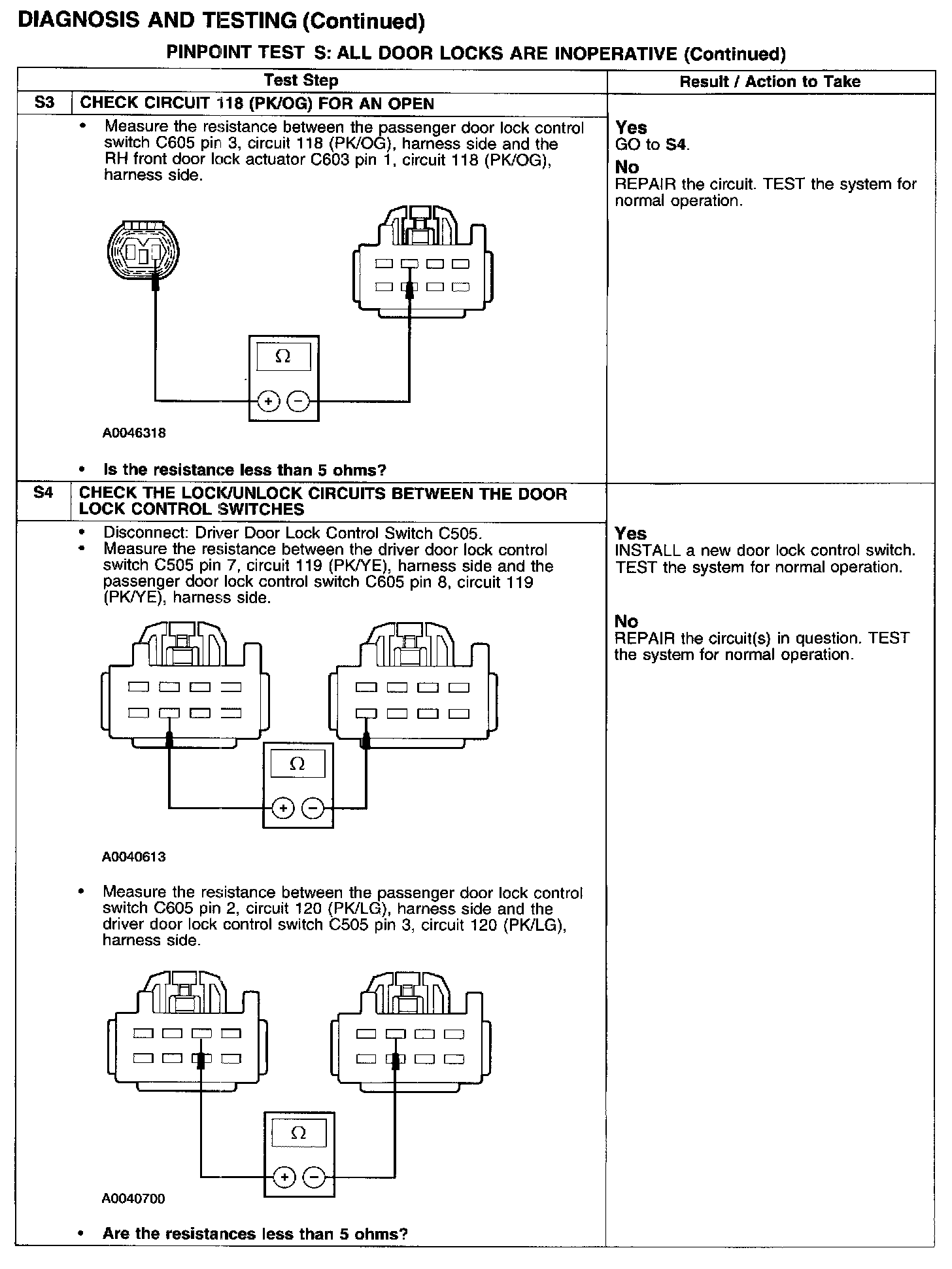PINPOINT TEST S: ALL DOOR LOCKS ARE INOPERATIVE