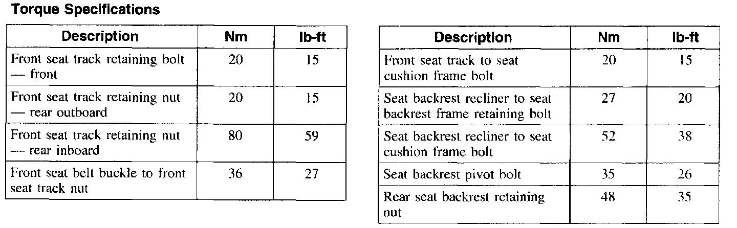 Torque Specifications: