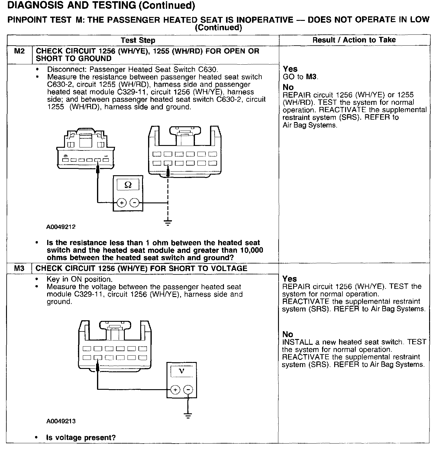 PINPOINT TEST M: THE PASSENGER HEATED SEAT IS INOPERATIVE - DOES NOT OPERATE IN LOW