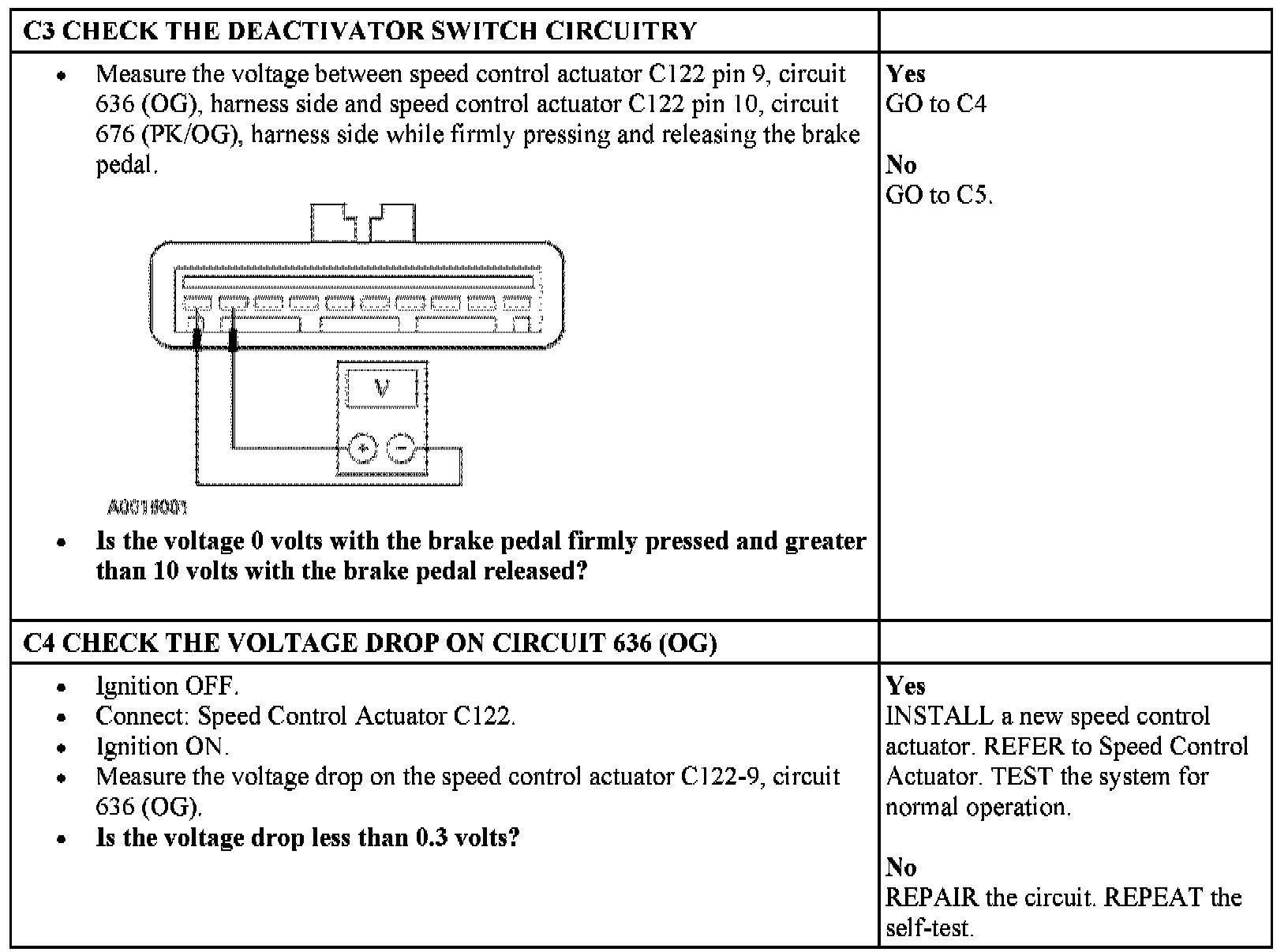 PINPOINT TEST C: THE SPEED CONTROL DOES NOT DISENGAGE WHEN THE BRAKES ARE APPLIED