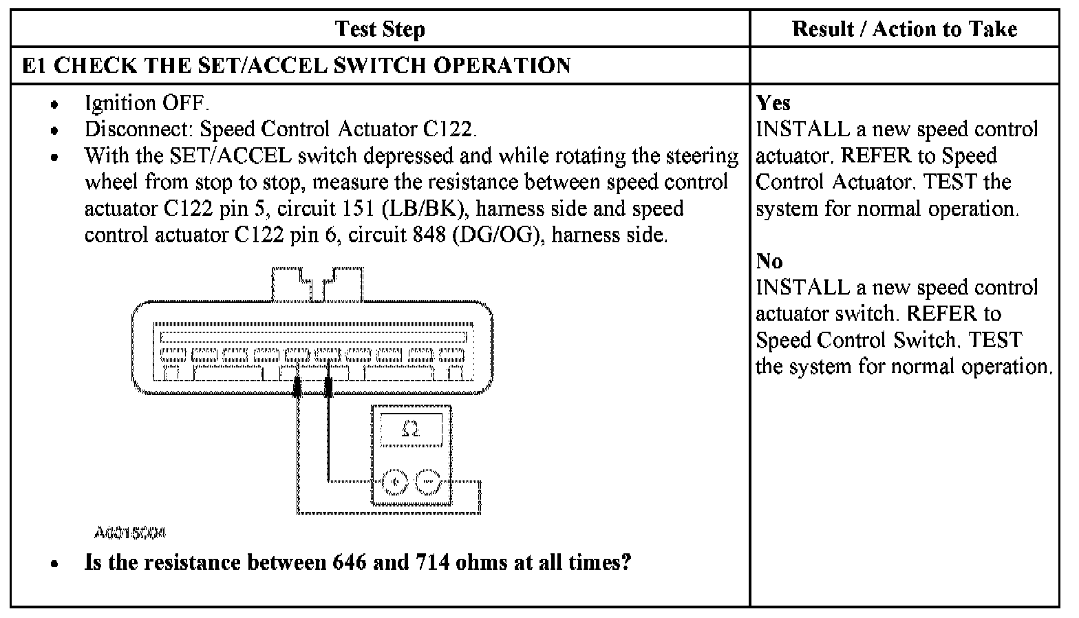 PINPOINT TEST E: THE SET/ACCEL SWITCH IS INOPERATIVE