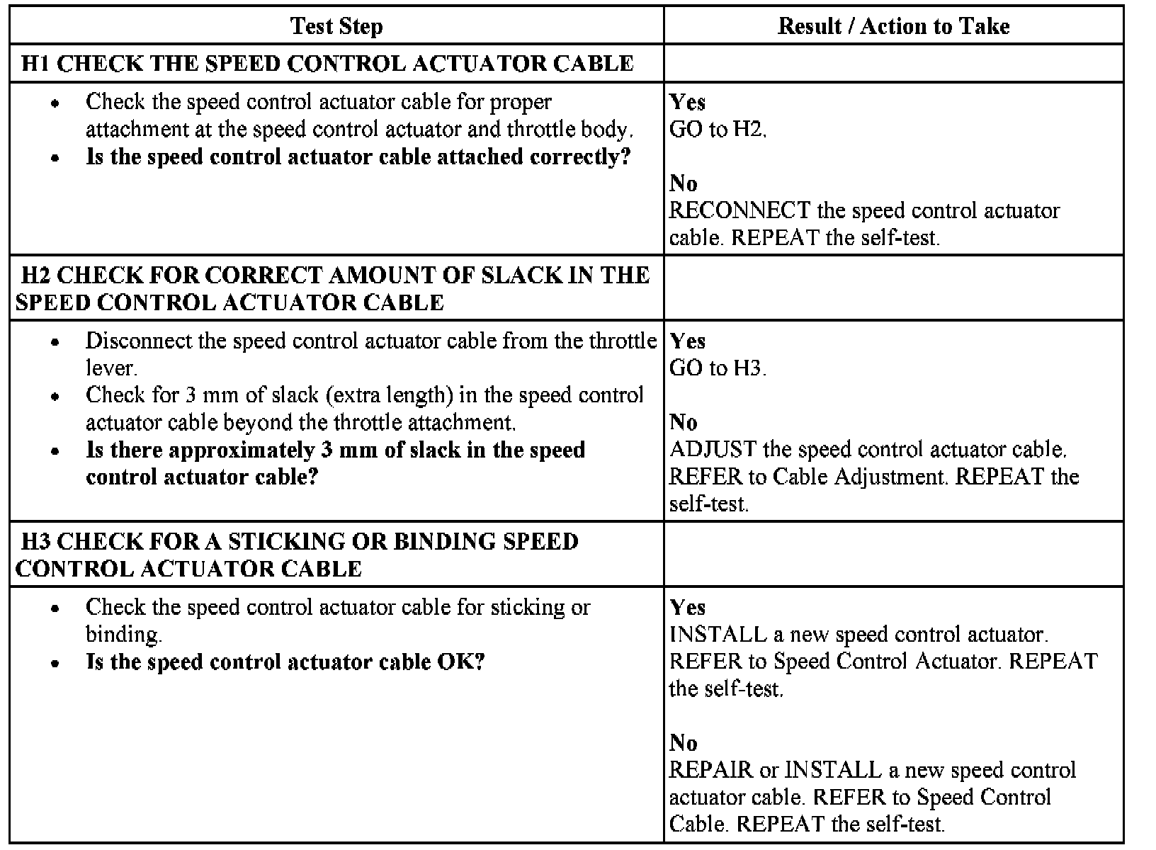 PINPOINT TEST H: FLASH WITH LAST SWITCH PRESSED, BUT NO DYNAMIC PULL OCCURS AT THROTTLE AND SPEED CONTROL INOPERATIVE