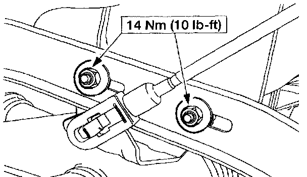 10. Tighten the height sensor ball stud bracket retaining nuts.