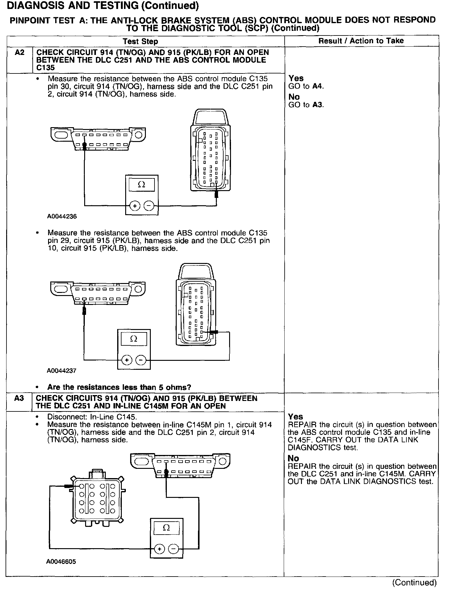 PINPOINT TEST A: THE ANTI-LOCK BRAKE SYSTEM (ABS) CONTROL MODULE DOES NOT RESPOND TO THE DIAGNOSTIC TOOL (SCP)