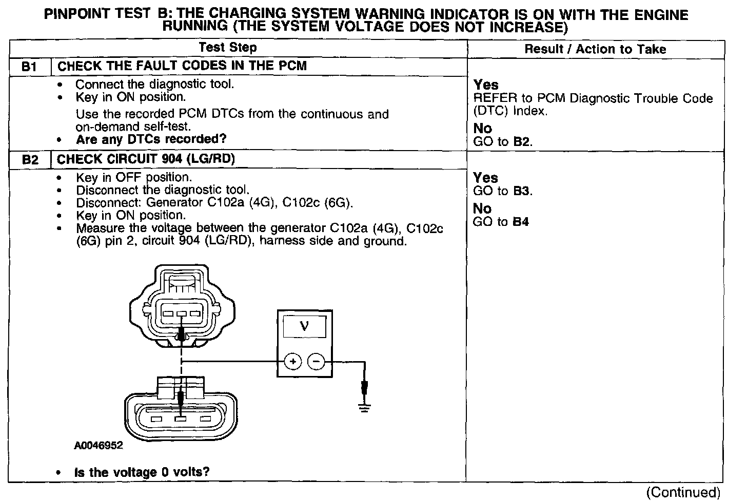 WARNING INDICATOR IS ON WITH THE ENGINE RUNNING (THE SYSTEM VOLTAGE DOES NOT INCREASE)
