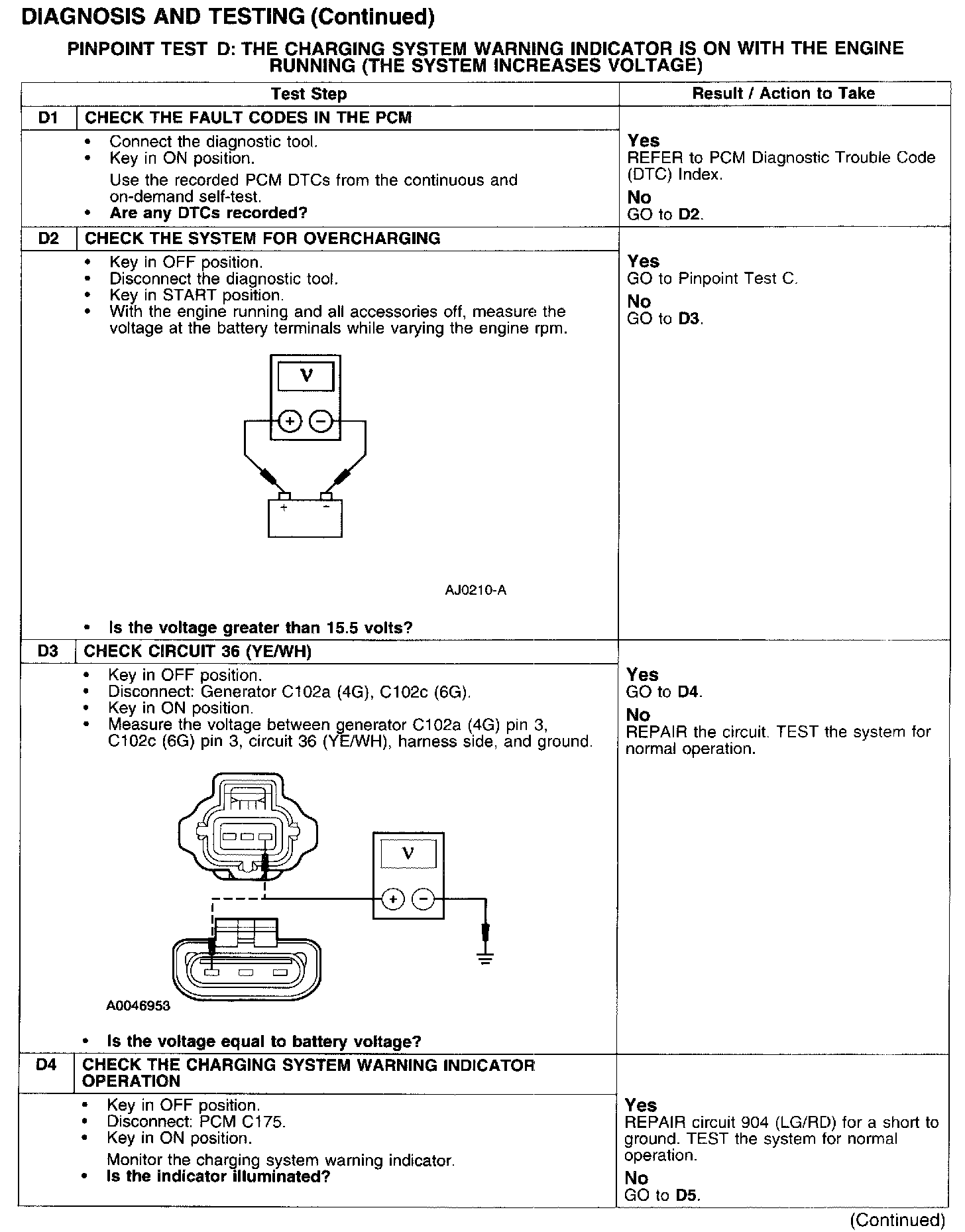 WARNING INDICATOR IS ON WITH THE ENGINE RUNNING (THE SYSTEM INCREASES VOLTAGE)