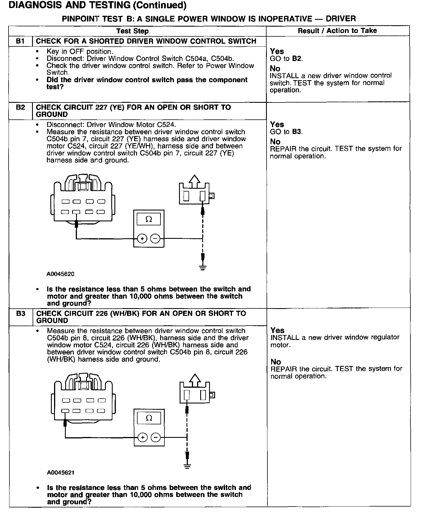 PINPOINT TEST B: A SINGLE POWER WINDOW IS INOPERATIVE - DRIVER