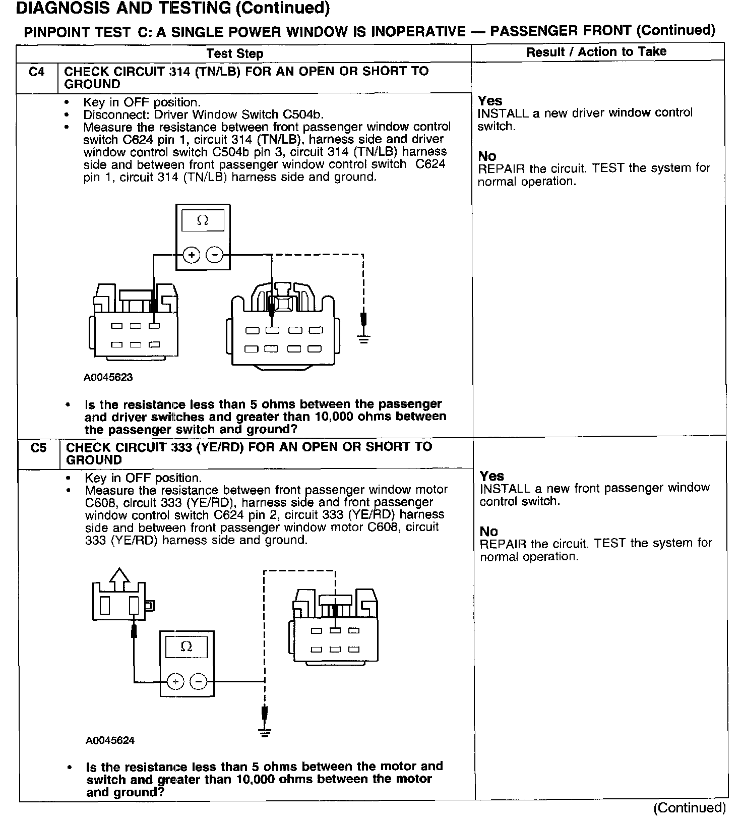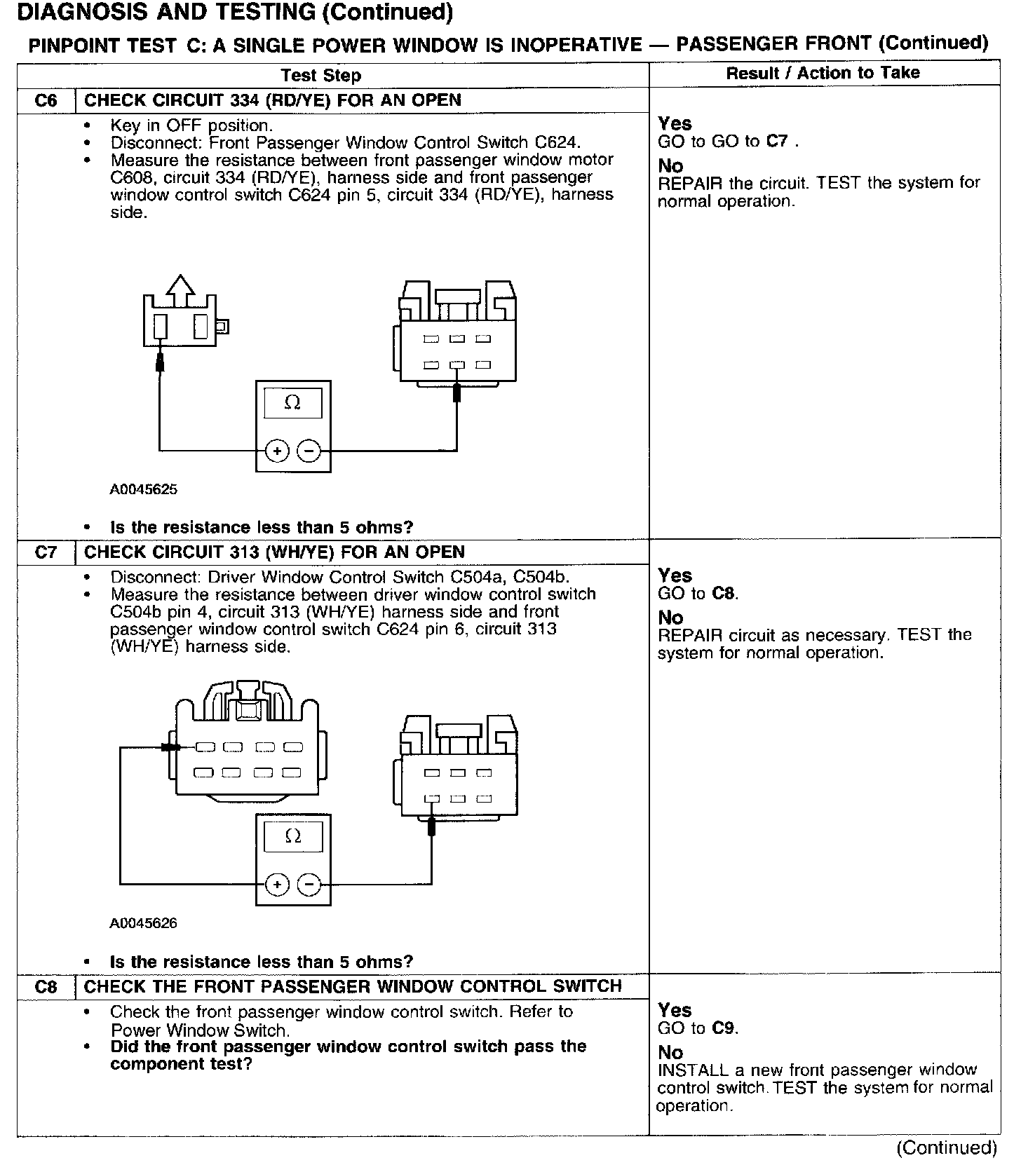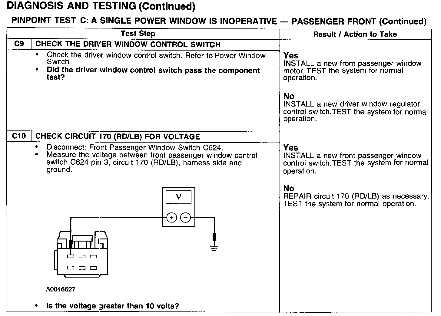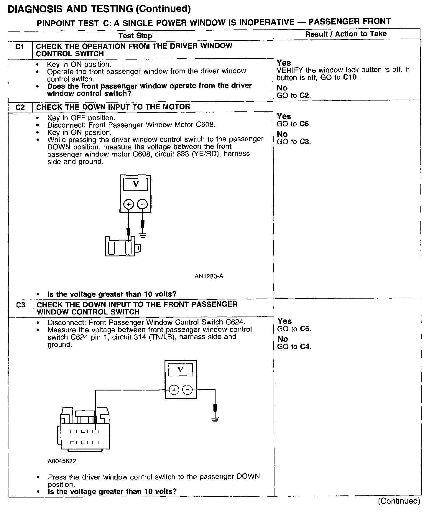 PINPOINT TEST C: A SINGLE POWER WINDOW IS INOPERATIVE - PASSENGER FRONT