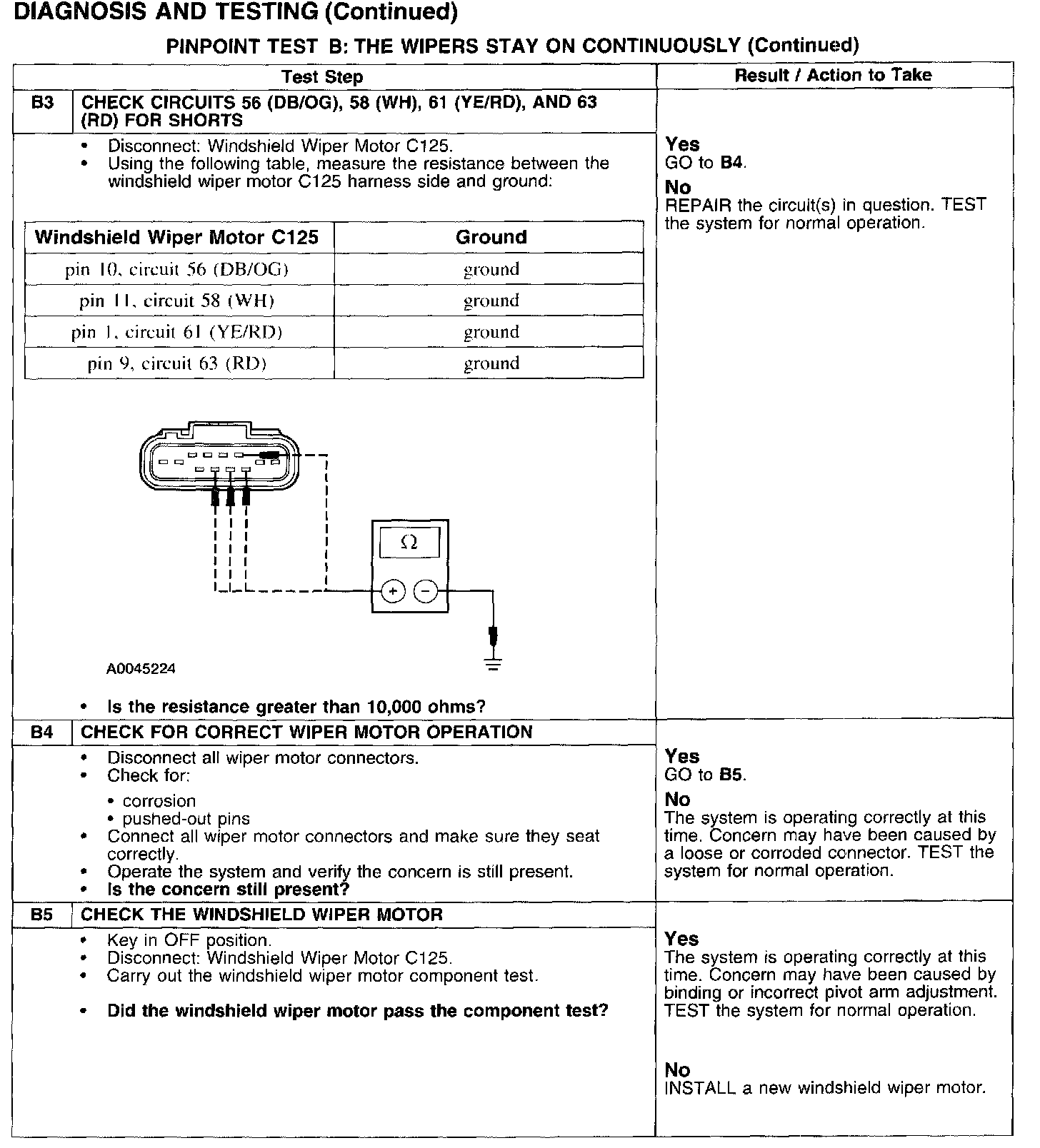 PINPOINT TEST B: THE WIPERS STAY ON CONTINUOUSLY