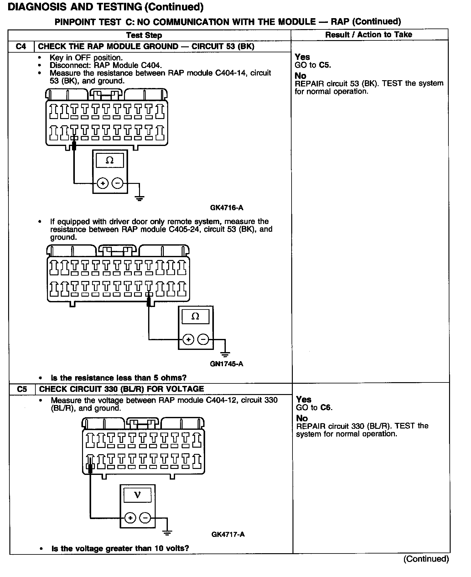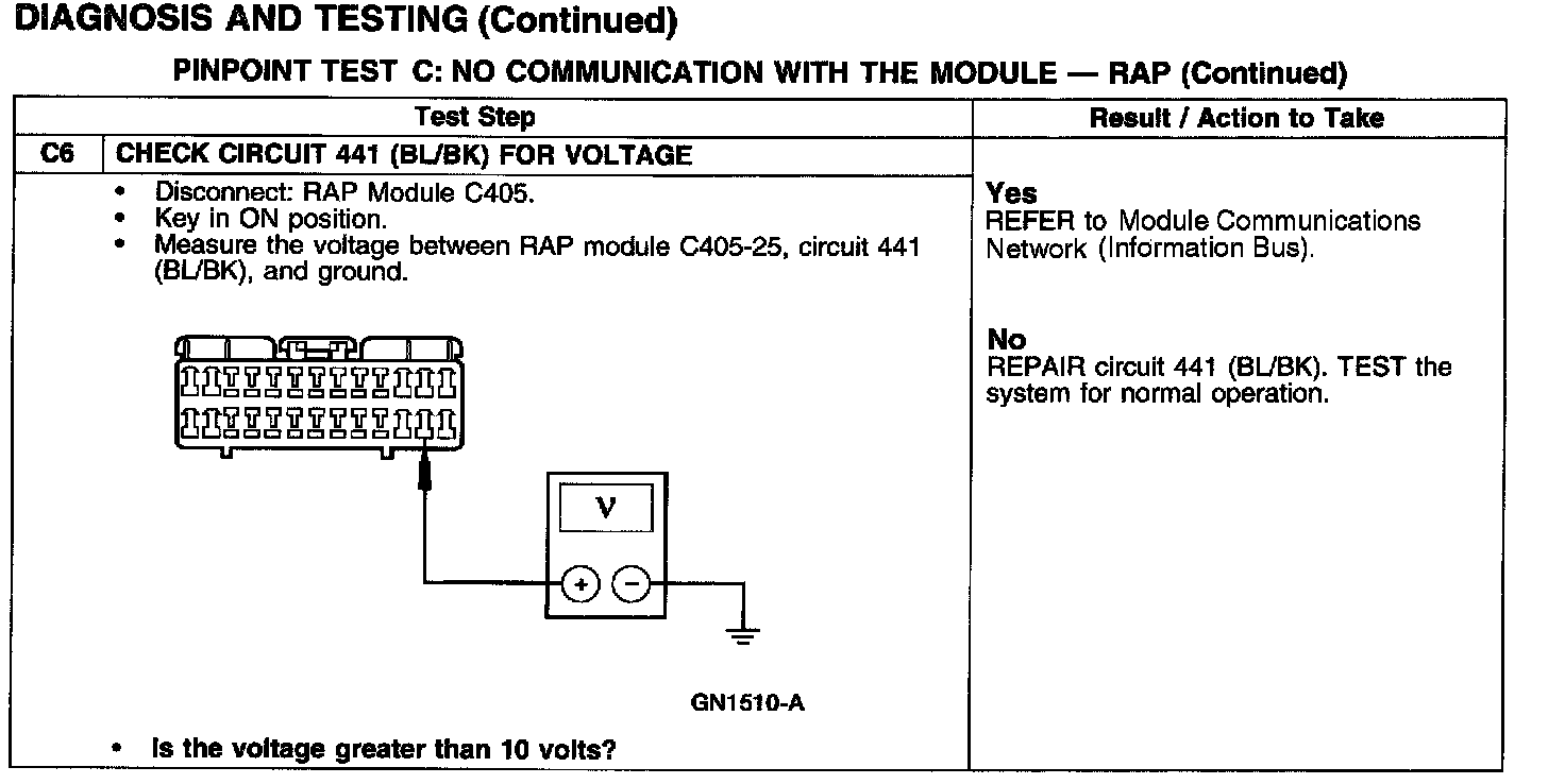 PINPOINT TEST C: NO COMMUNICATION WITH THE MODULE - RAP