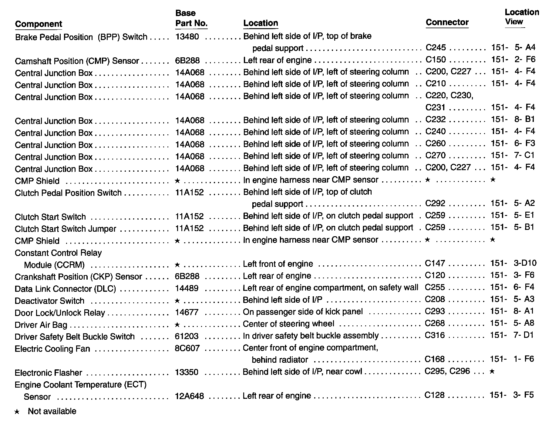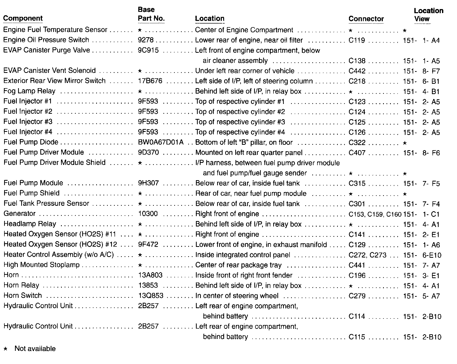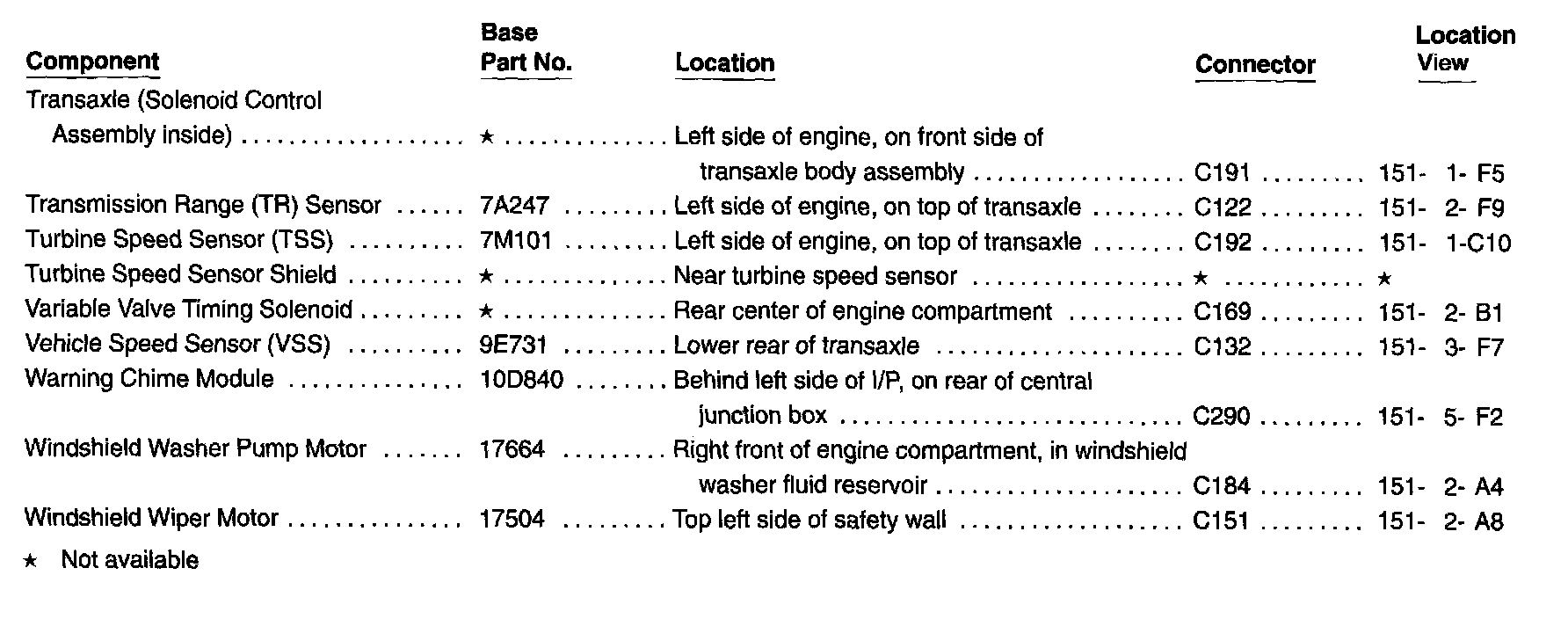 PLEASE NOTE: If a link on the Component Location Index to a view is not provided, that means that the Component and/or View in question does NOT apply to the vehicle model selected.