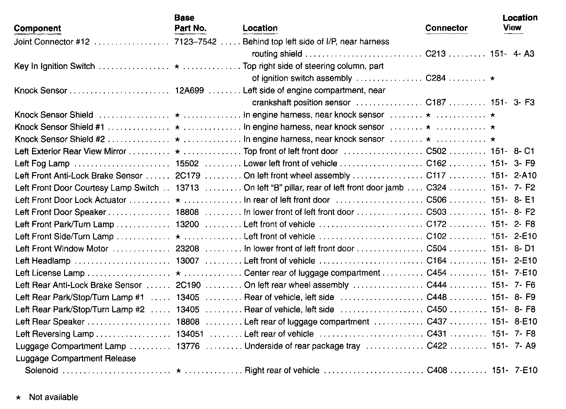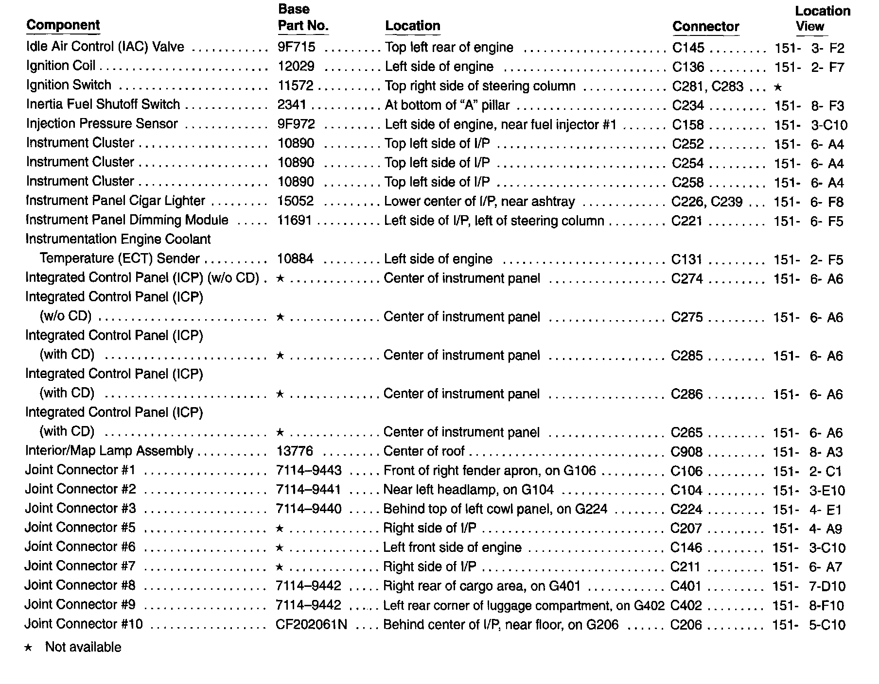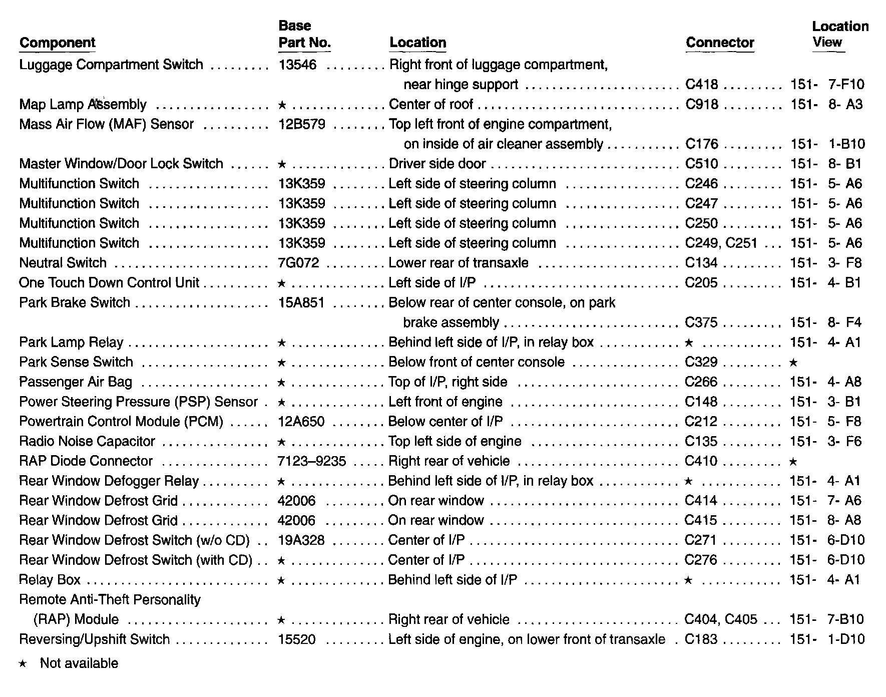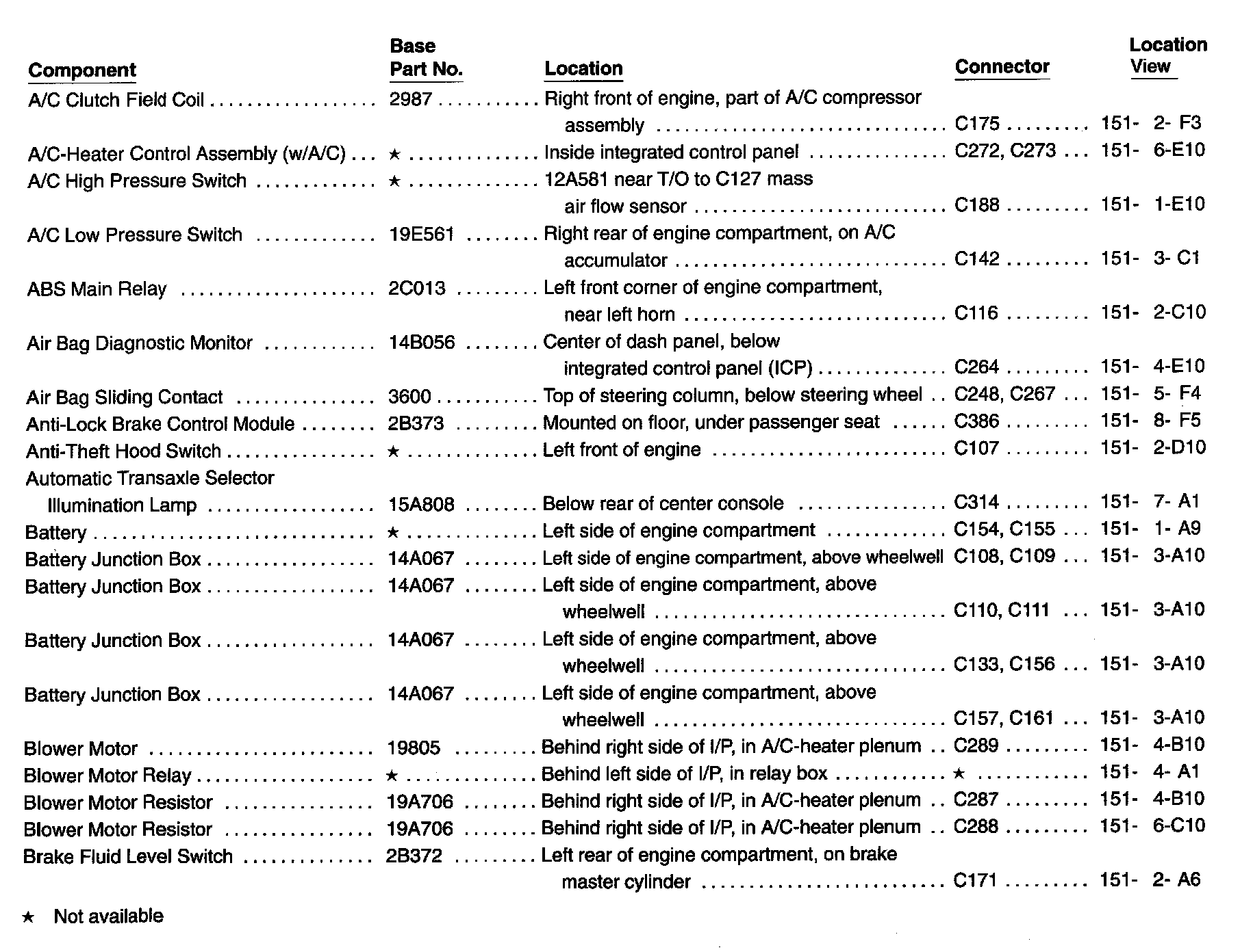 PLEASE NOTE: If a link on the Component Location Index to a view is not provided, that means that the Component and/or View in question does NOT apply to the vehicle model selected.