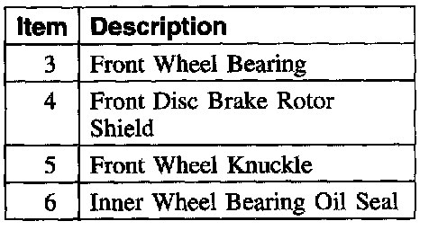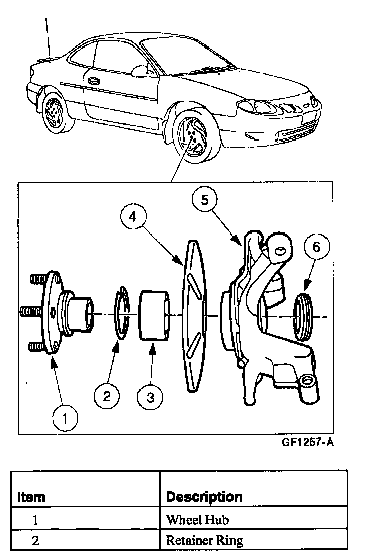 The front wheel bearing supports the wheel, front disc brake rotor and wheel hub. The front wheel bearing is pressed onto the wheel hub and pressed into the front wheel knuckle.