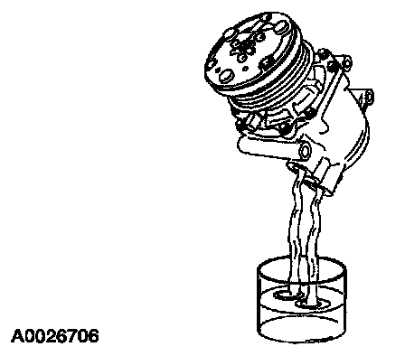 1. Rotate the A/C compressor shaft six to eight revolutions while collecting oil in a clean measuring device.