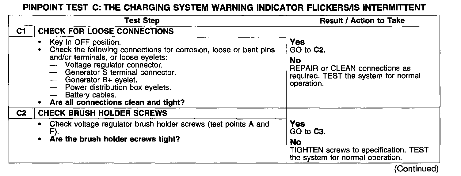 Test C: Charging System Indicator Flickers/Is Intermittent