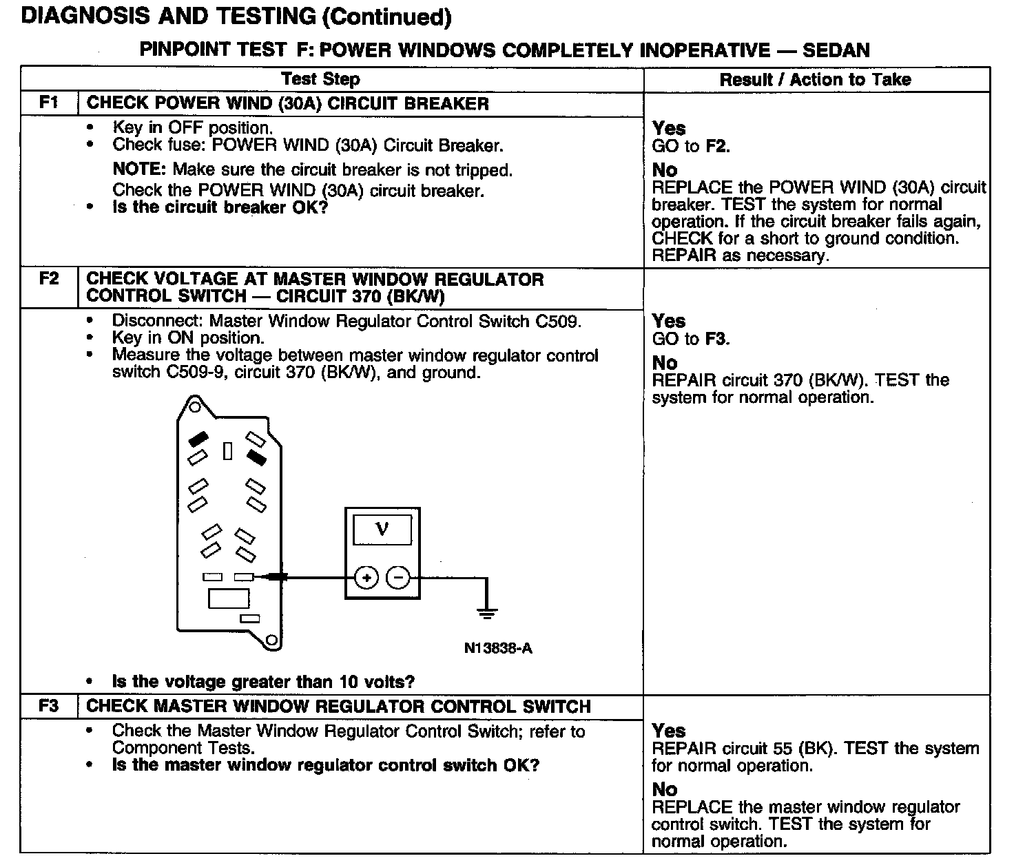 PINPOINT TEST F: POWER WINDOWS COMPLETELY INOPERATIVE - SEDAN