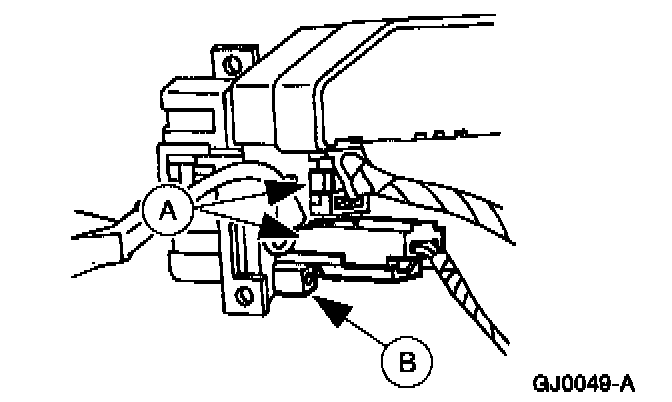 4. Disconnect the (A) electrical connectors and remove the (B) windshield wiper/washer switch.