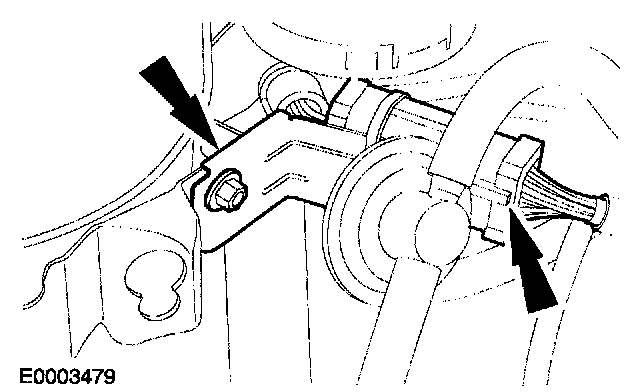 12. Disconnect the lower evaporative emission canister vacuum line and remove the evaporative emission canister purge valve.