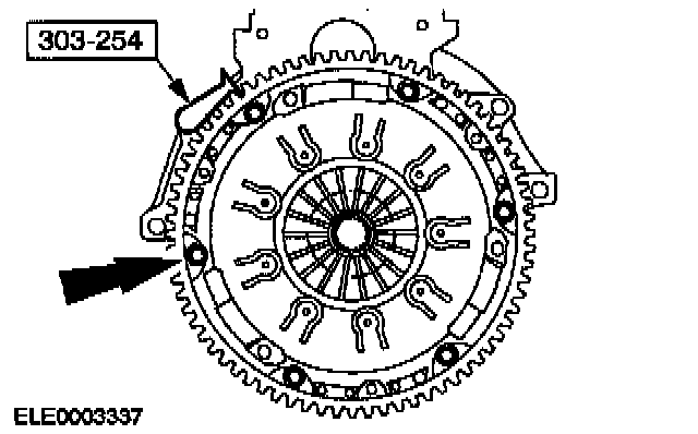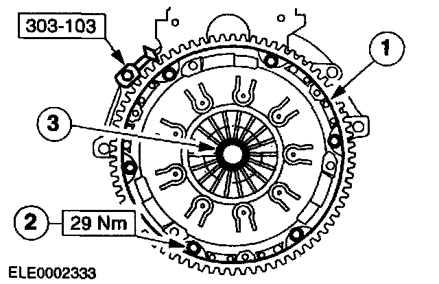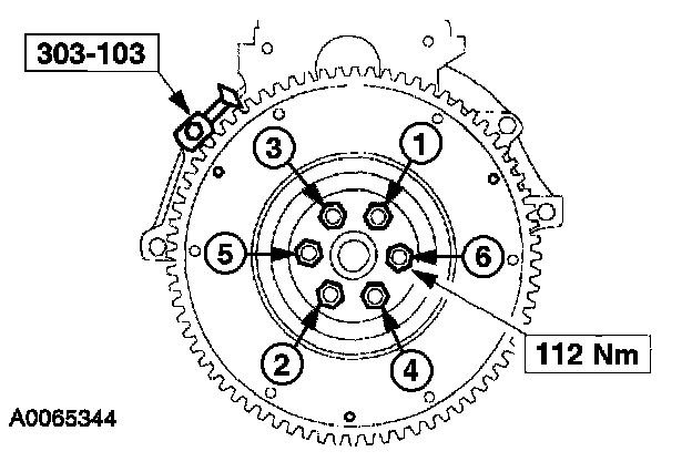 2. Attach special tool 303-103 and tighten the bolts in the sequence shown to 112 Nm (83 ft. lbs.).
