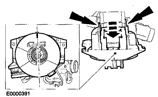 2 Turn the air bag sliding contact CLOCKWISE 2.5 turns until the arrow marked on the center of the sliding contact aligns with the raised "V" section at the 12 o'clock position on the outer cover of the sliding contact. The sliding contact is now centralized.