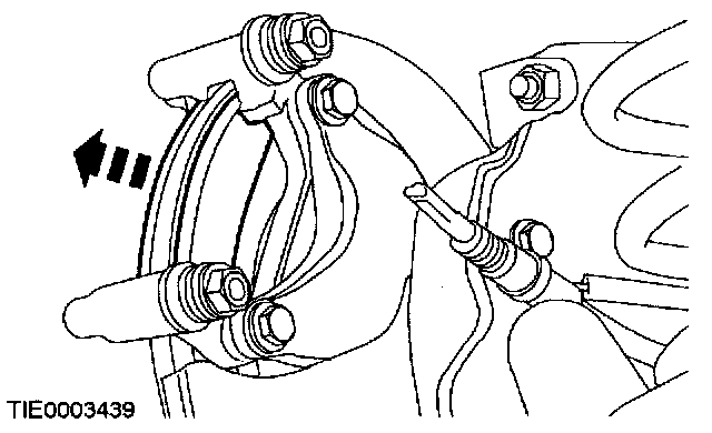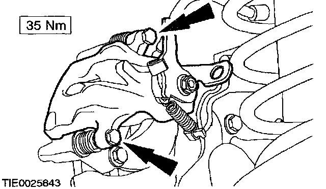 3. CAUTION: Suspend the brake caliper to prevent load being placed on the brake hose.