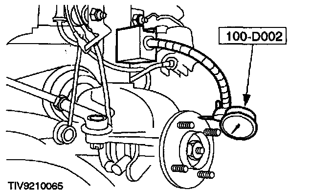 6. Install a dial indicator gauge and holding fixture to the suspension strut.