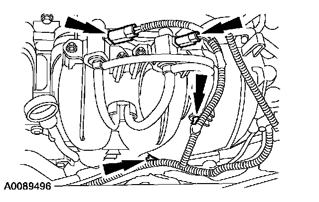 17. Raise the intake manifold enough to gain clearance to disconnect the knock sensor (KS) wiring harness.