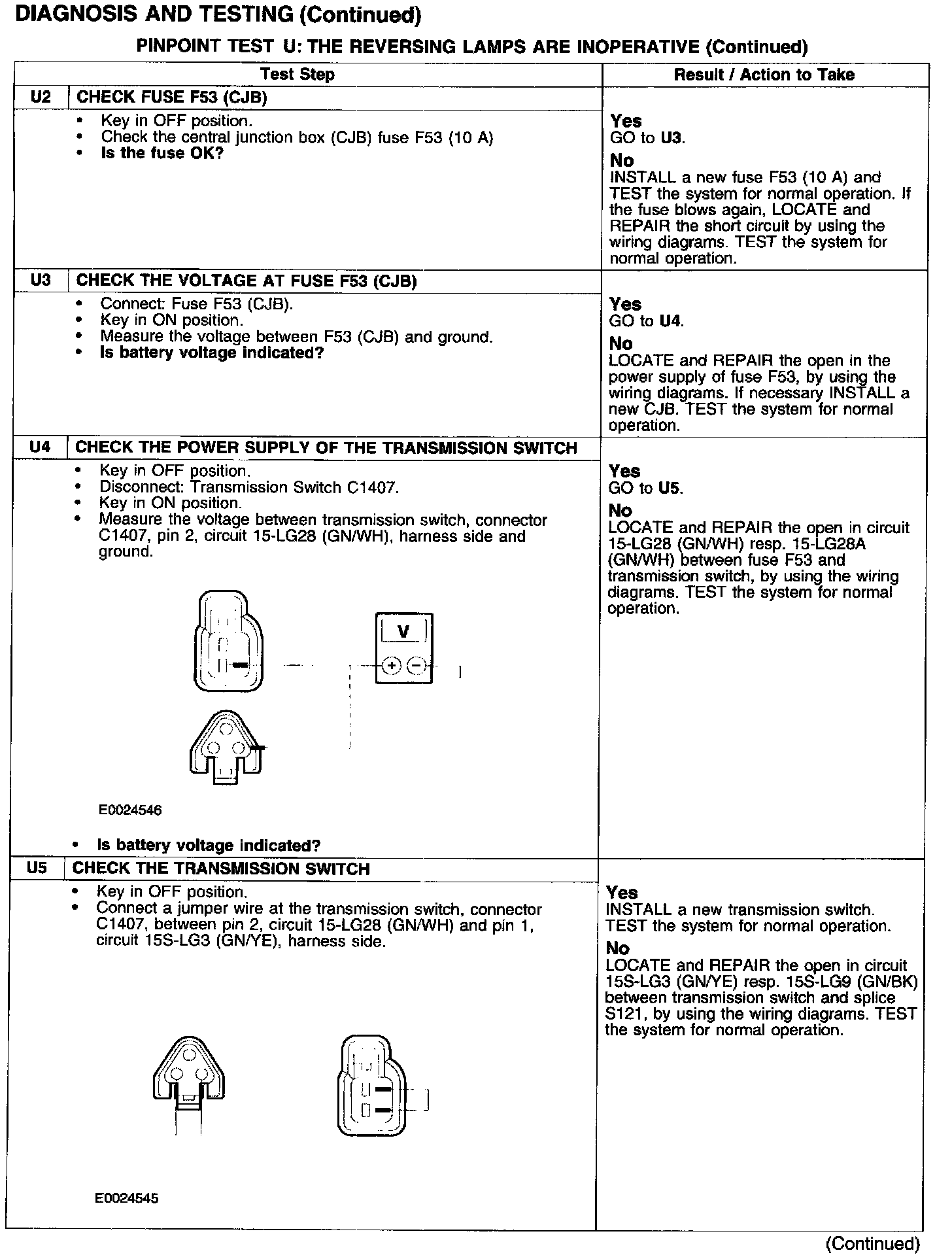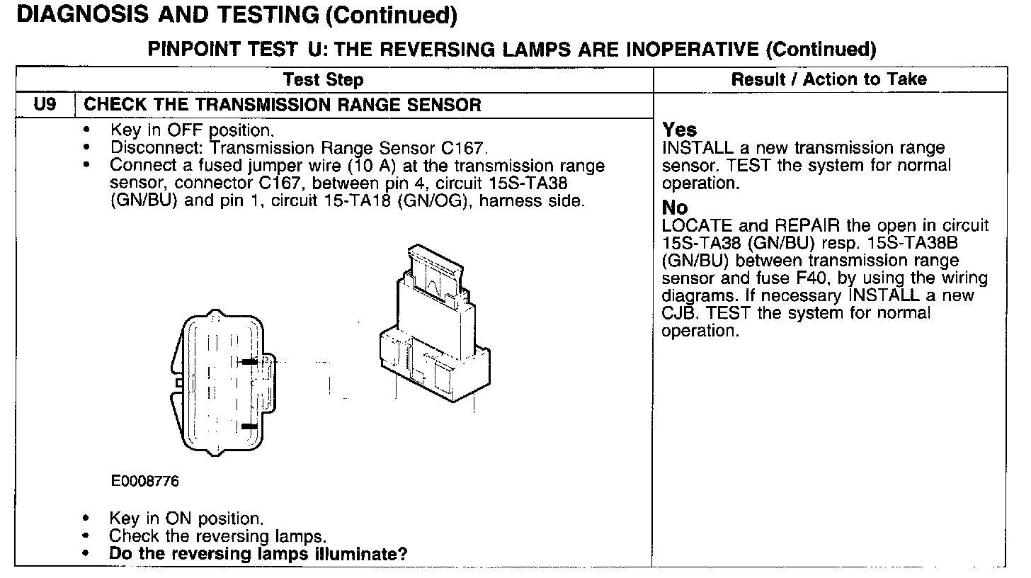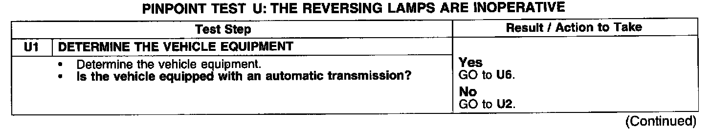 PINPOINT TEST U: THE REVERSING LAMPS ARE INOPERATIVE