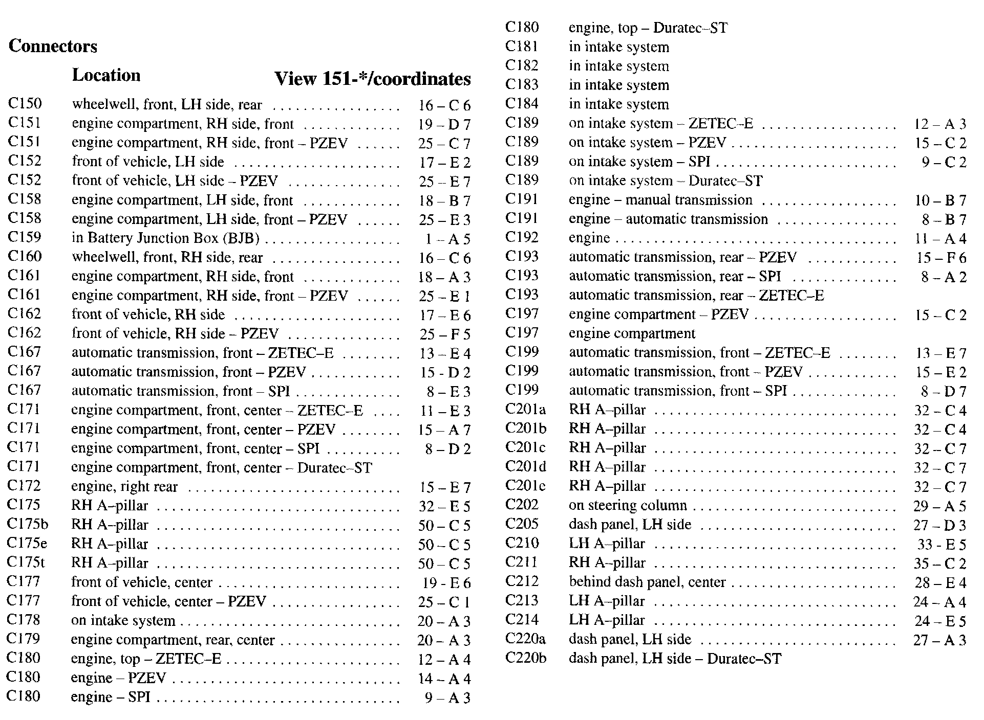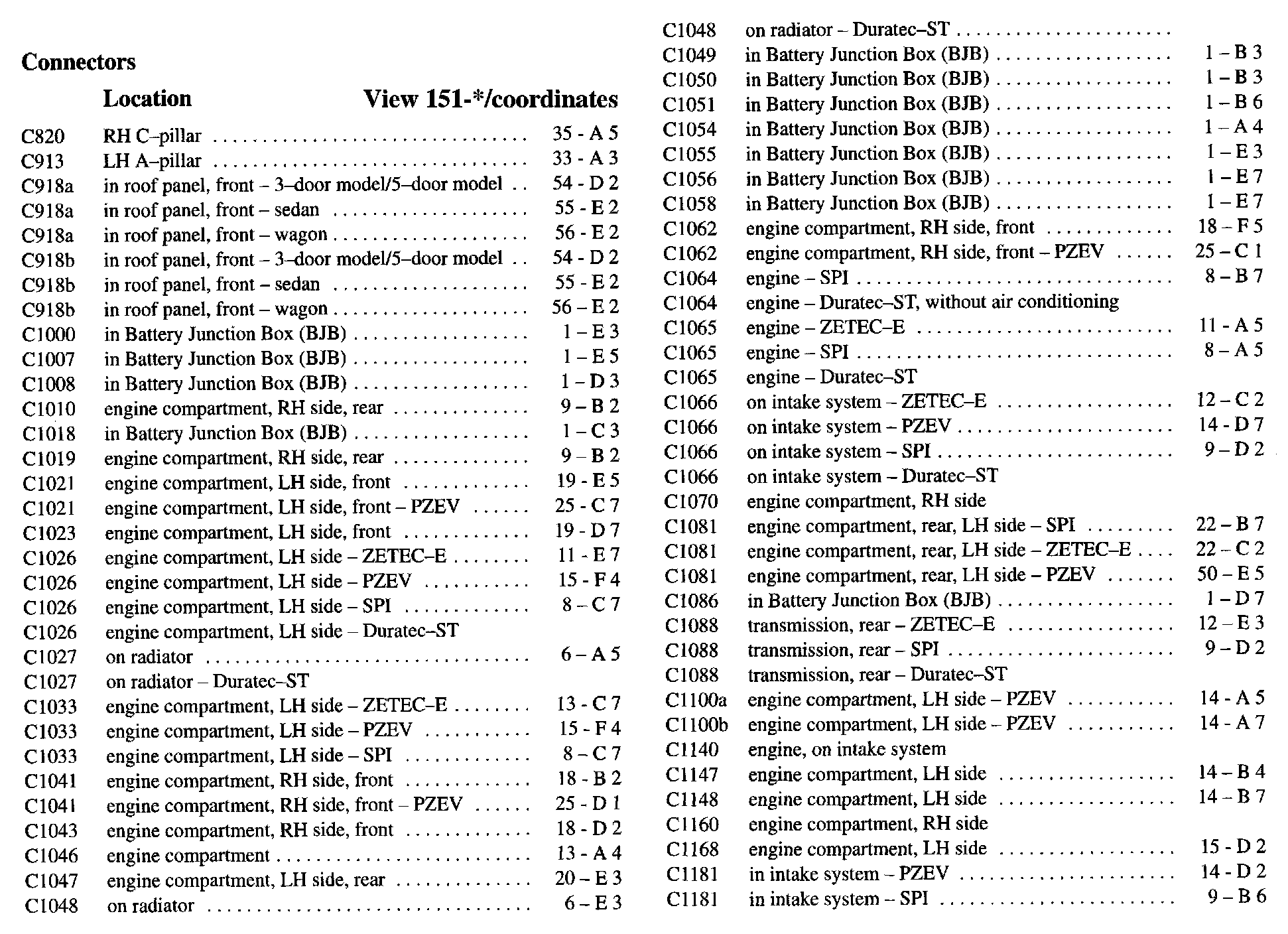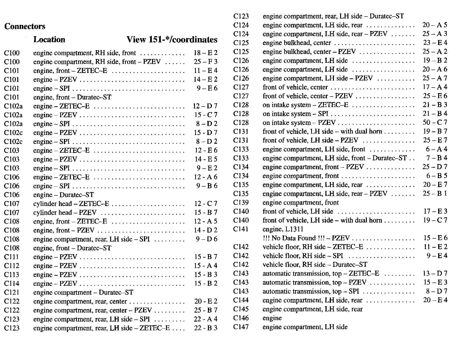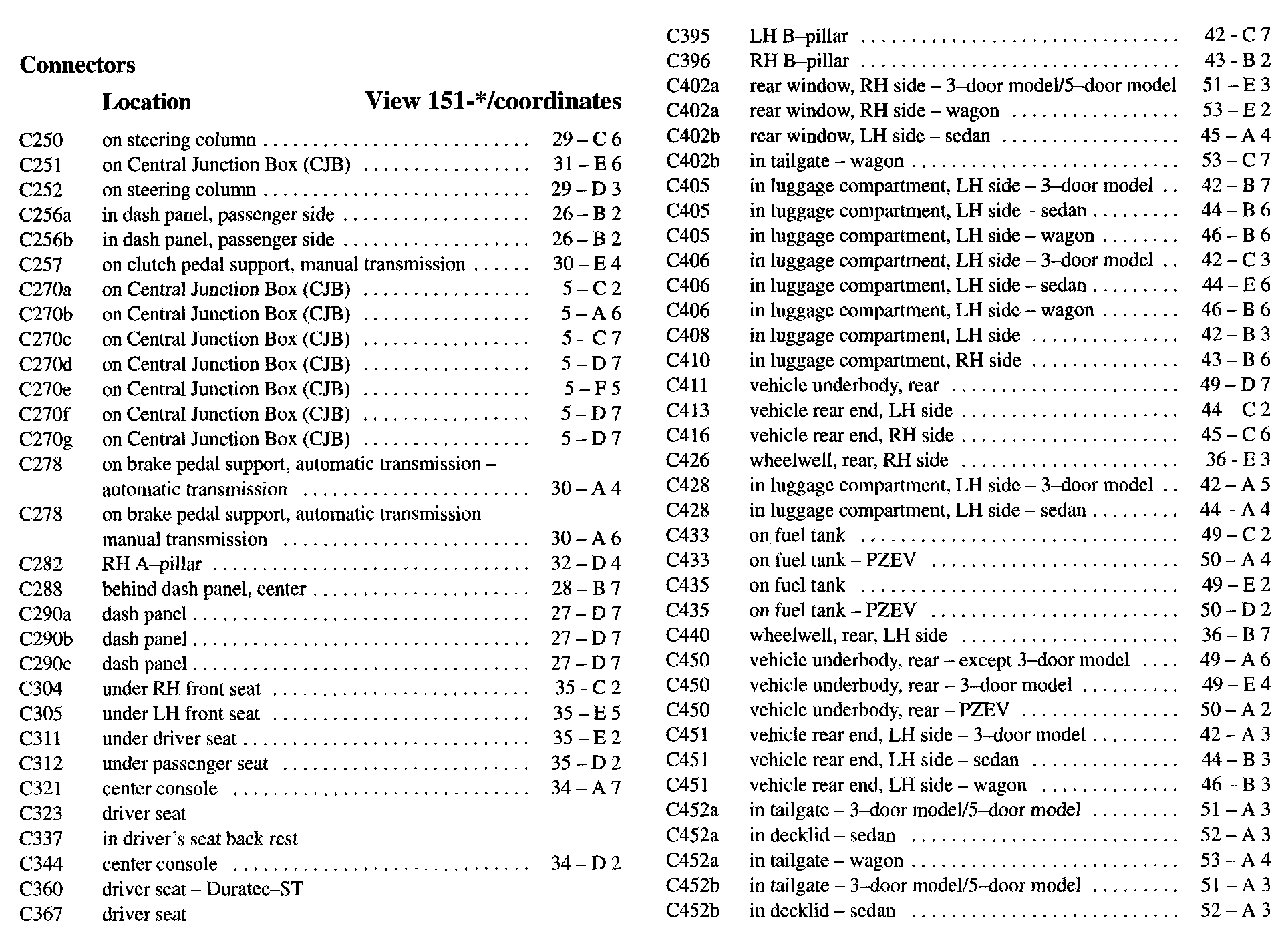 PLEASE NOTE: If a link on the Connector Location Index to a view is not provided, that means that the Connector and/or View in question does NOT apply to the vehicle model selected.