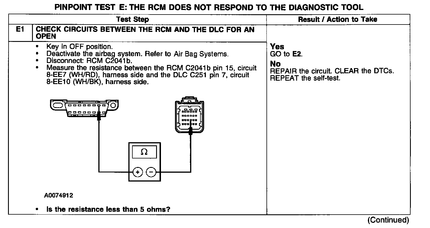 PINPOINT TEST E: THE RCM DOES NOT RESPOND TO THE DIAGNOSTIC TOOL