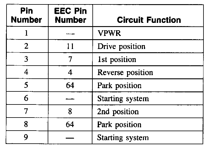 Transmission Range (TR) Sensor Vehicle Harness Connector