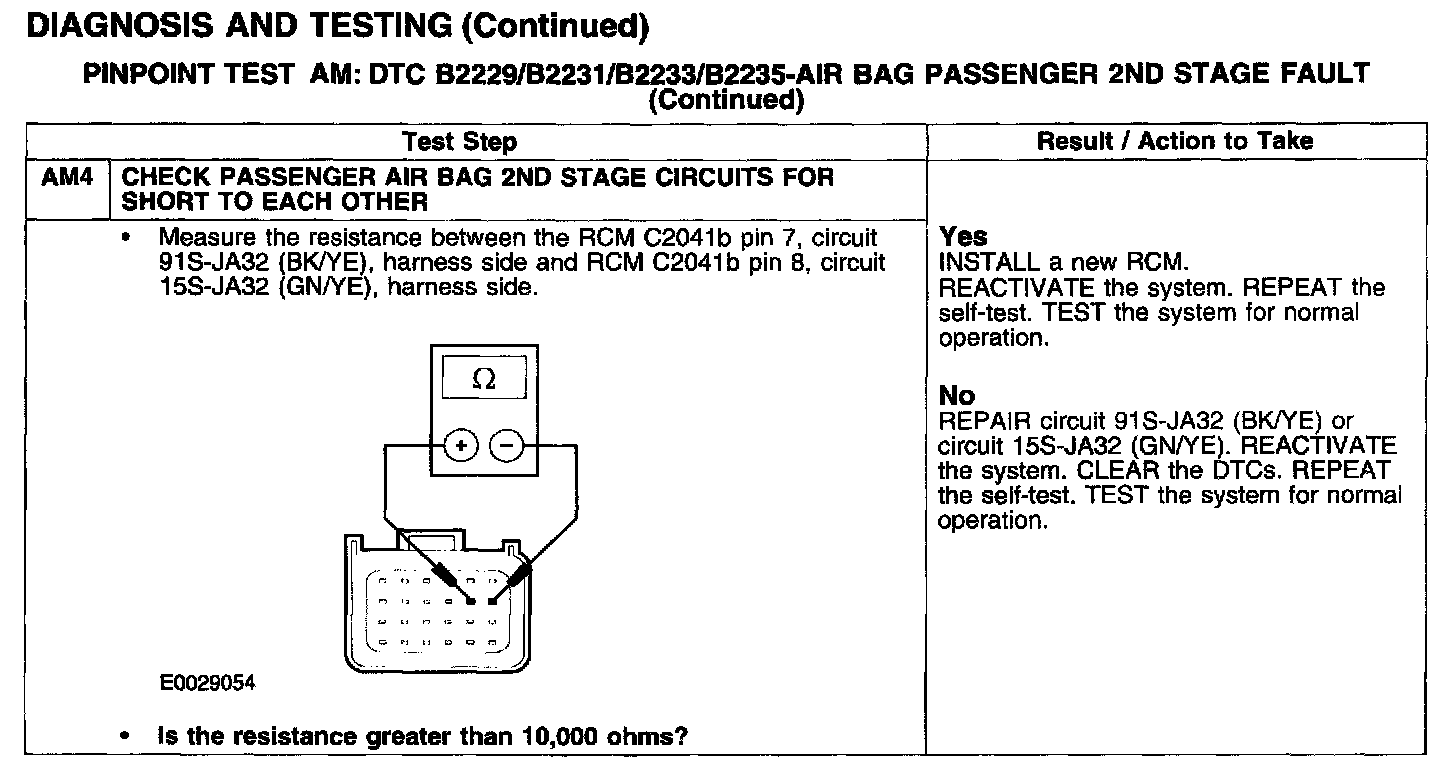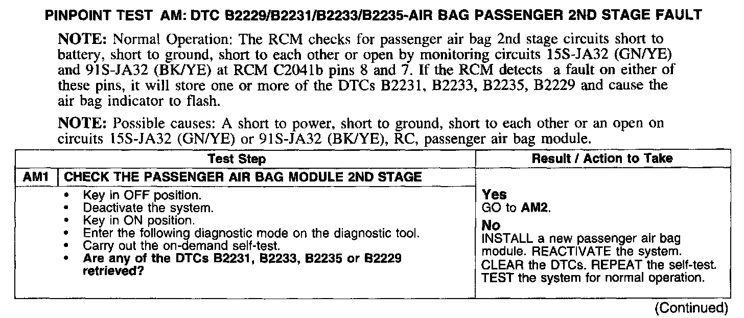 PINPOINT TEST AM: DTC B2229/B2231/B2233/B2235 -