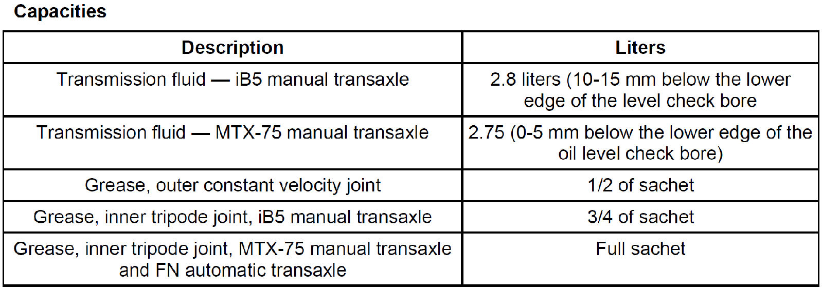 Capacity Specifications