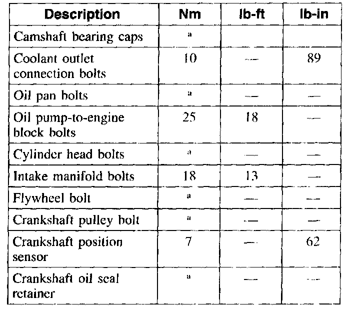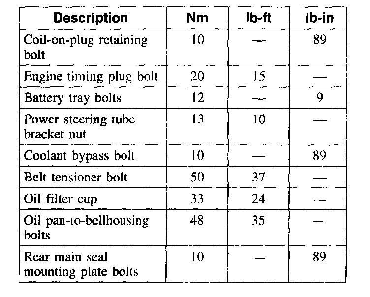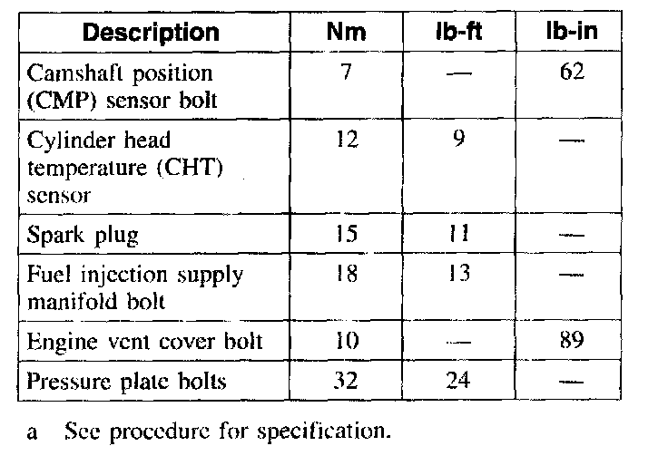Torque SpecificationsIntake manifold mounting bolts 18 Nm (13 ft. lbs.)